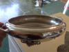 Looks like it could hold about 3/4 gallon of liquid. Stamped on the bottom, see photo. Has two handles, removable lid with a half circle hole on edge. Dimensions are 7" in height and 8 1/2" wide.