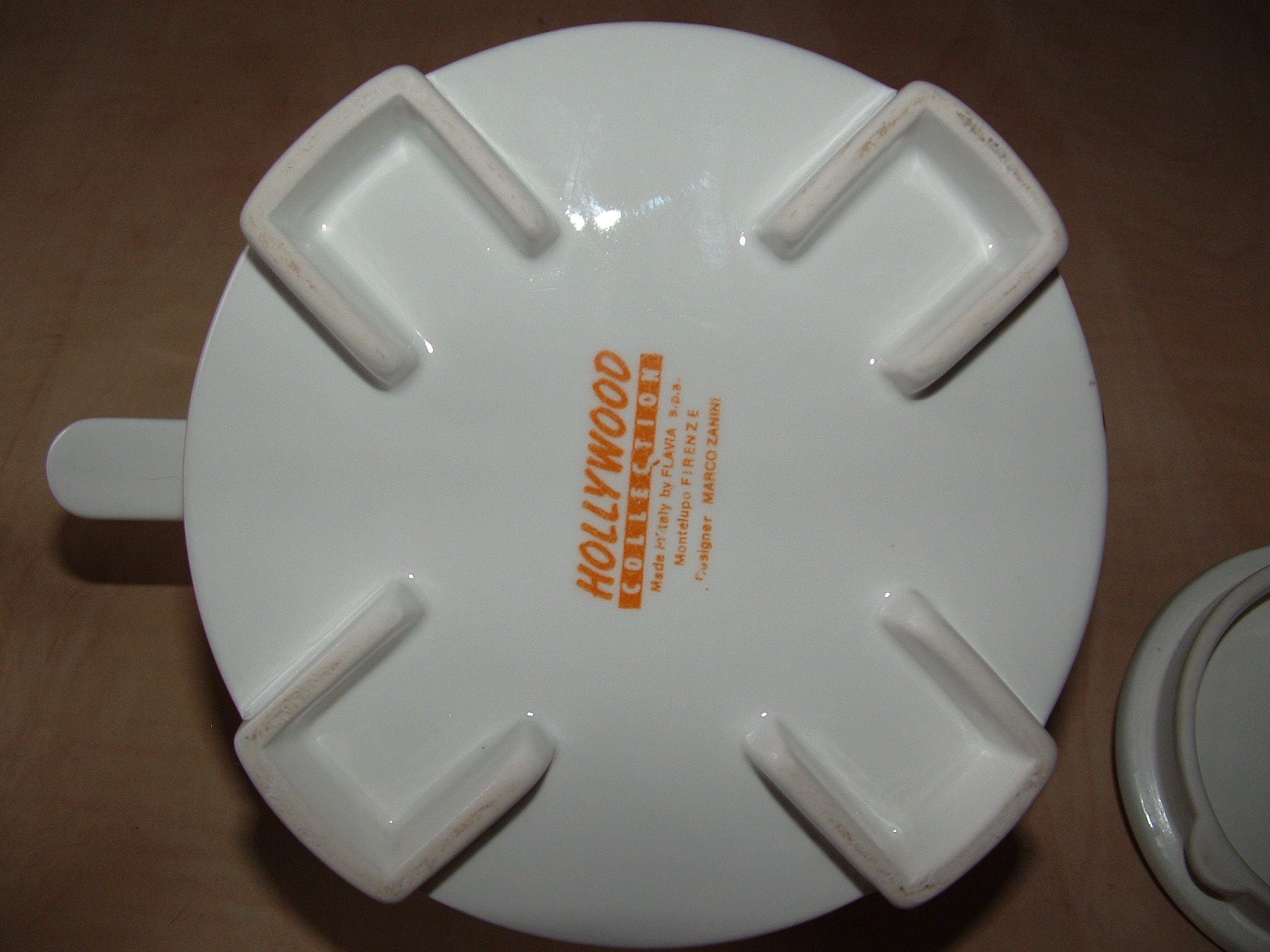 Design tabeleware Hollywood Collection by Marco Zanini. Made in Italy by Flavia S.P.A. Montelupe Firenze. There is a very little chip of the lid from the sugar-bowl (3mm x 2mm)