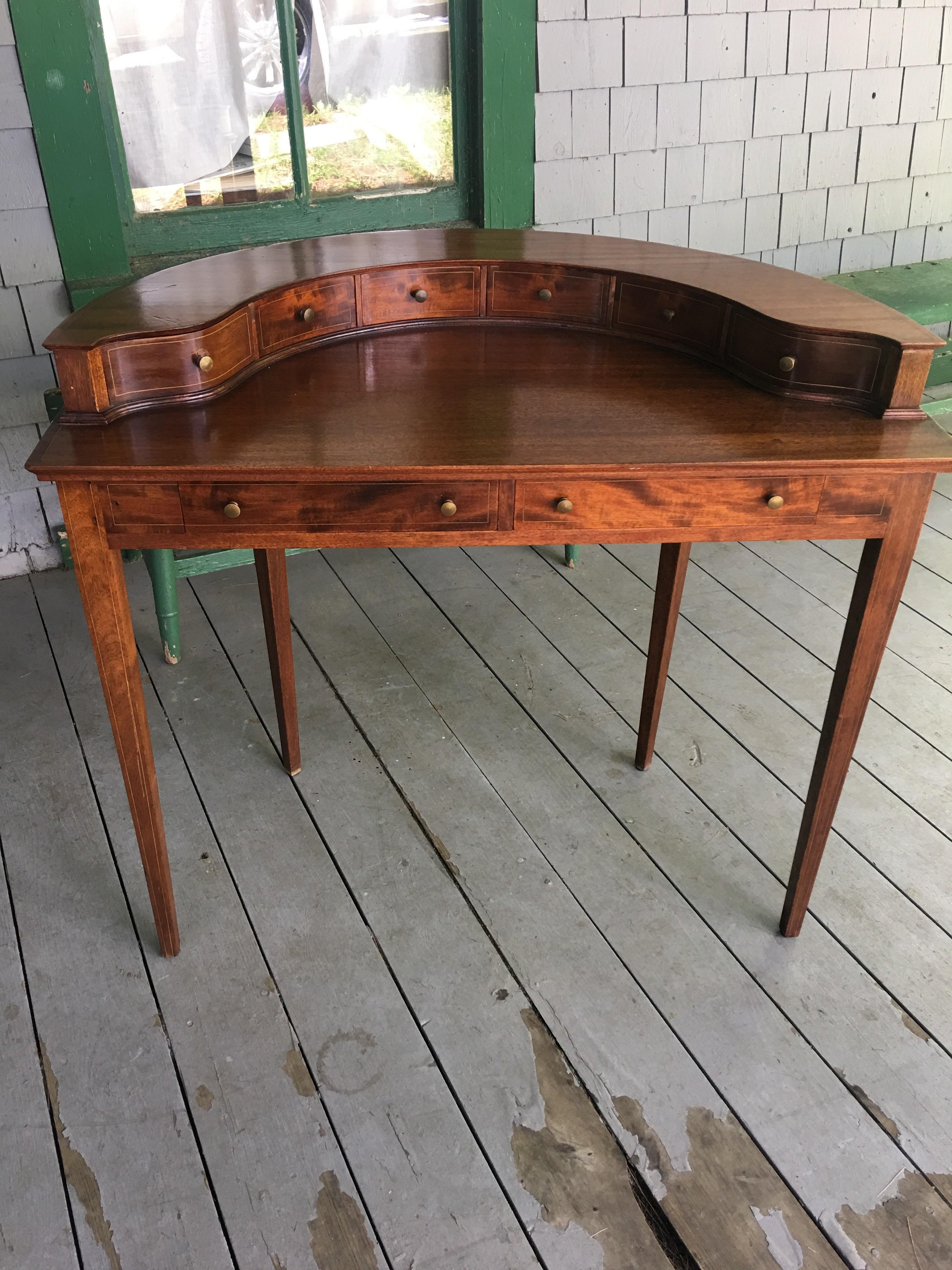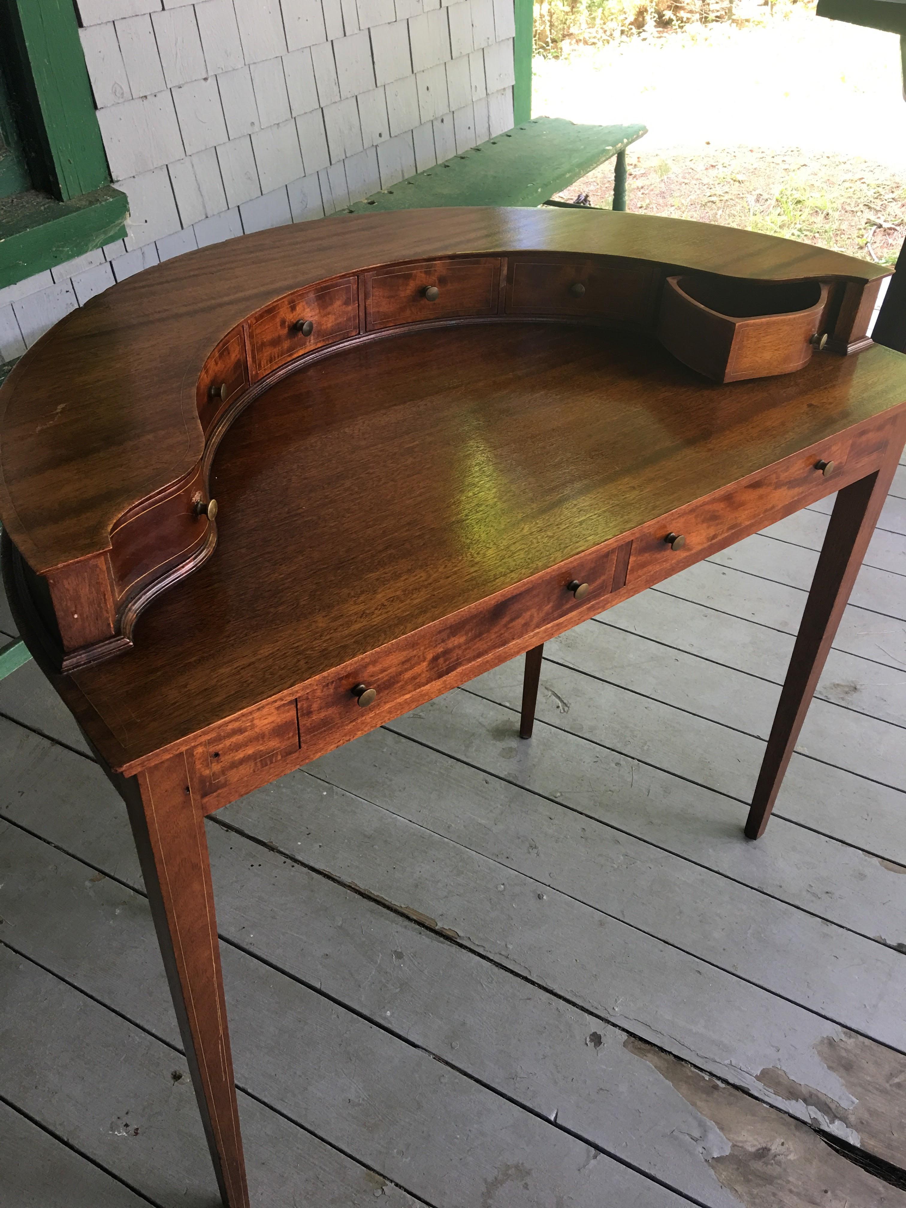 I do not know anything about this desk. I bought it in an antique store in Maine. I know it is mahogany inlay.