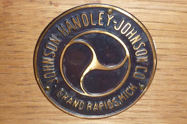 Metal circle plaque inside drawer: Johnson-Hadley-Johnson Grand Rapids MI