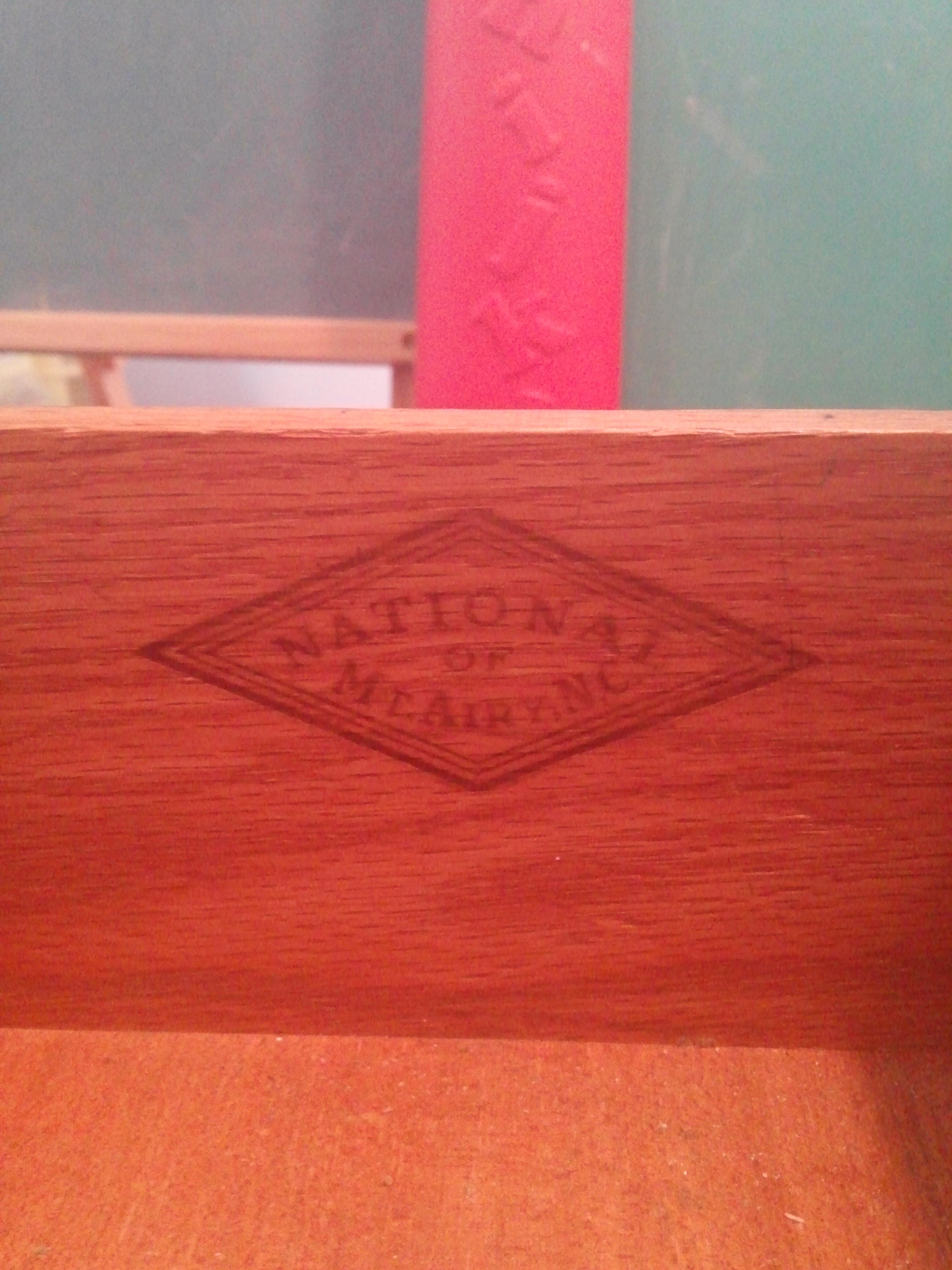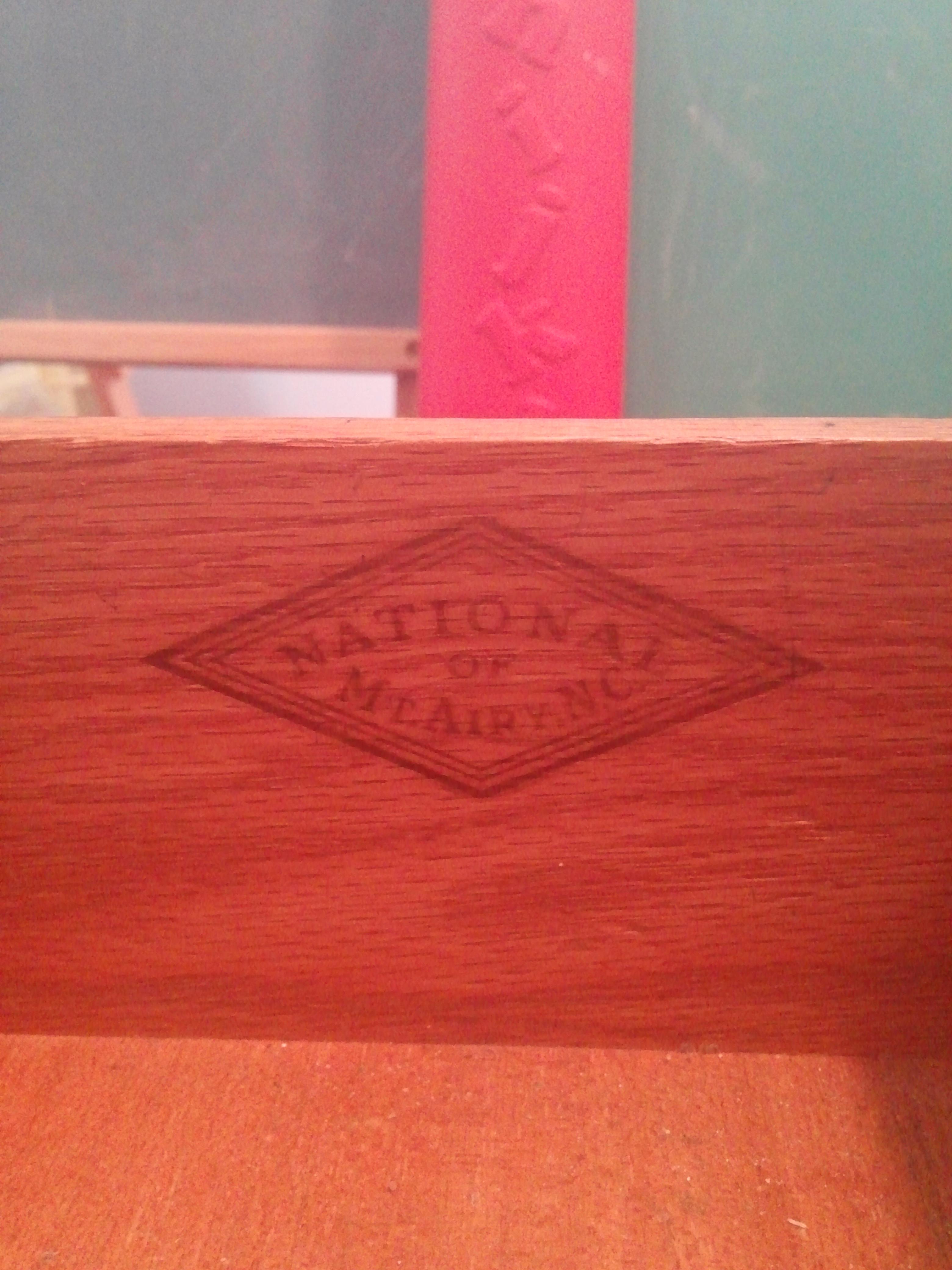 Distinguishing marks inside drawer is a red marking National of Mt Airy NC.