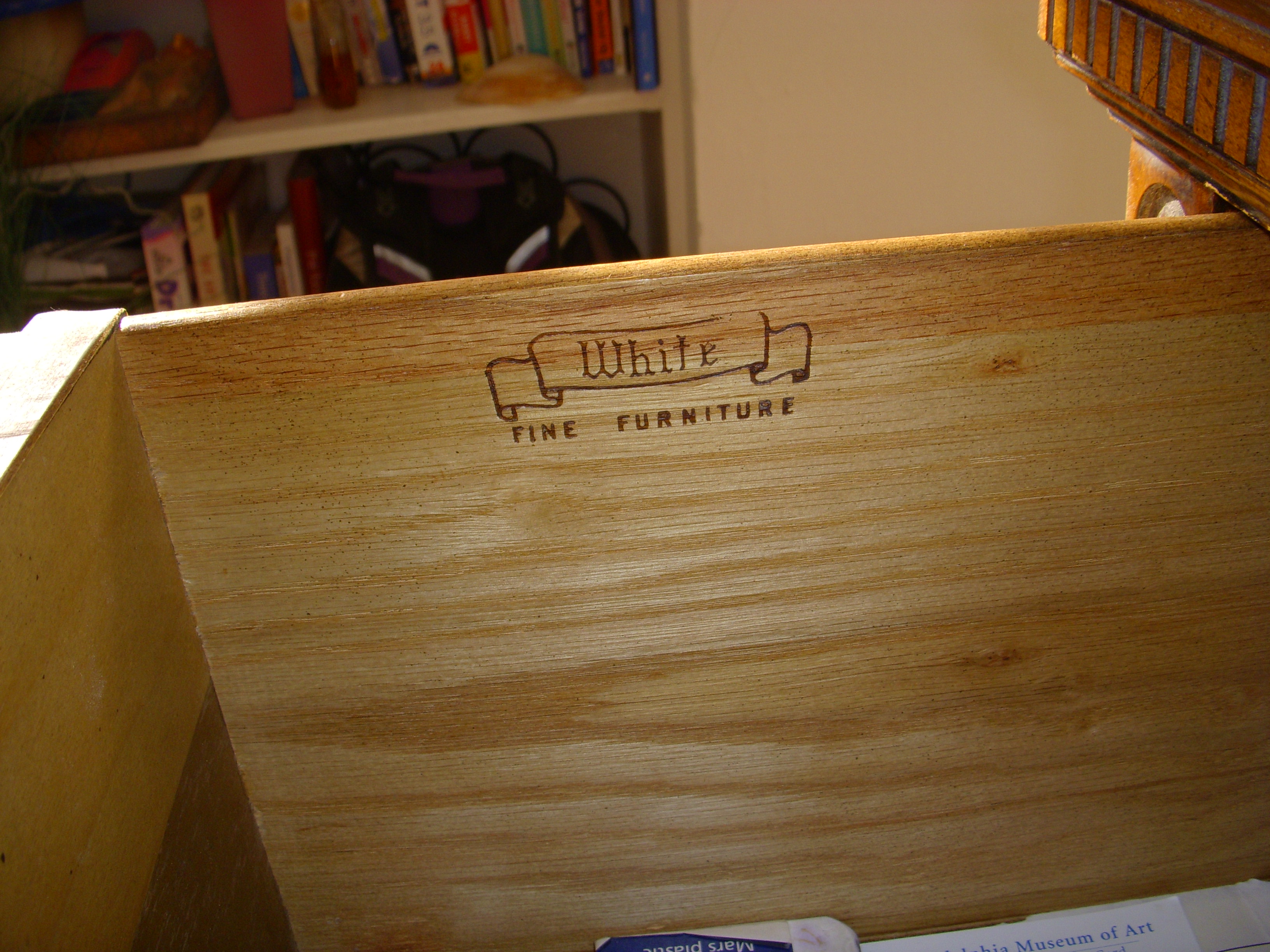 Distinguishing marks White fine furniture stamp inside of the drawer