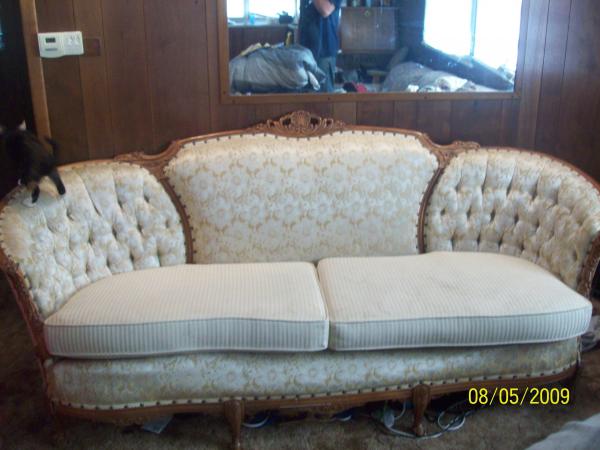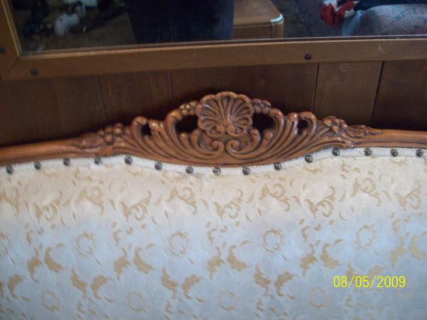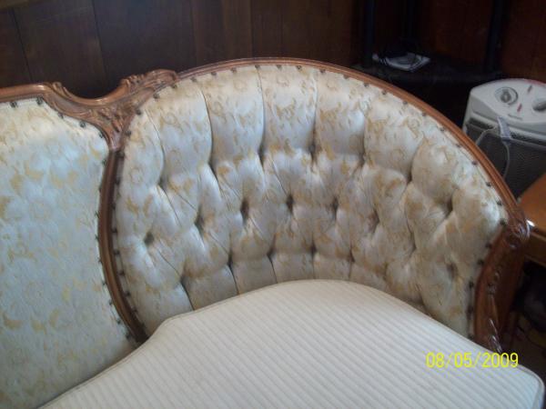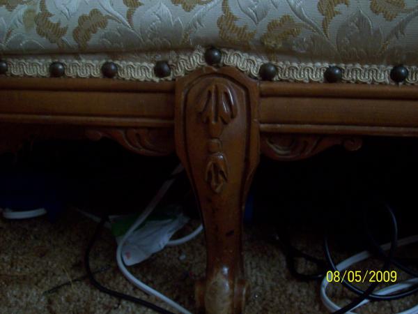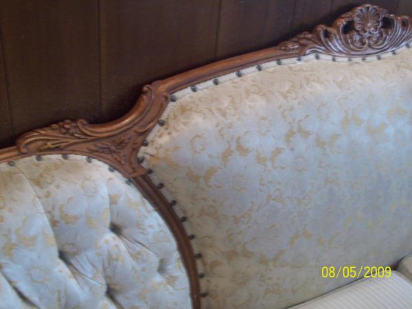 Deutsch Bro.s Inc. Chicago, Possibly French Povincial, gold floral satin upolstry, hand carved wood framing. Company closed in 1920. All pictures are jpg. and labled.
