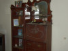 Hi there! Just wondered how much this is worth. I can't find anything on it describing who, when or where it was made. There is a tag on it, but it appears to be blank. The "face" carvings appear to be a lion or a monster or a dragon. There aren't any major flaws, only one piece of scroll work is missing from the right hand side of the door. The handles on the drawers match the carved faces. The glass on the top shelf door is curved. Any information on it would be greatly appreciated. Thanks!