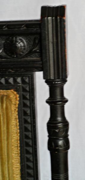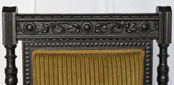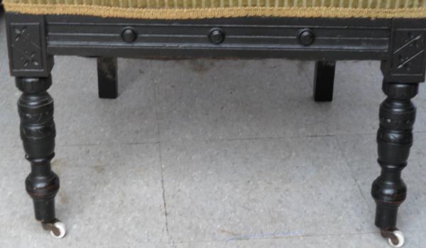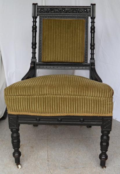 The Aesthetic Movement was a fairly minor phenomenon in the history of decorative arts. Lasting from around 1868 to 1910, it served mainly as a bridge between the high Victorian sensibility and the radical shift of the Arts & Crafts style. Pieces in this style tend to far less ornate than the other Victorian sub styles such as Rococo, Gothic and Renaissance Revival Most of it tends to be rather well made, the smaller pieces such as chairs still sell well in a market tired of Victorian furniture. We see them go in the $200.00- $300.00 range at auctions.