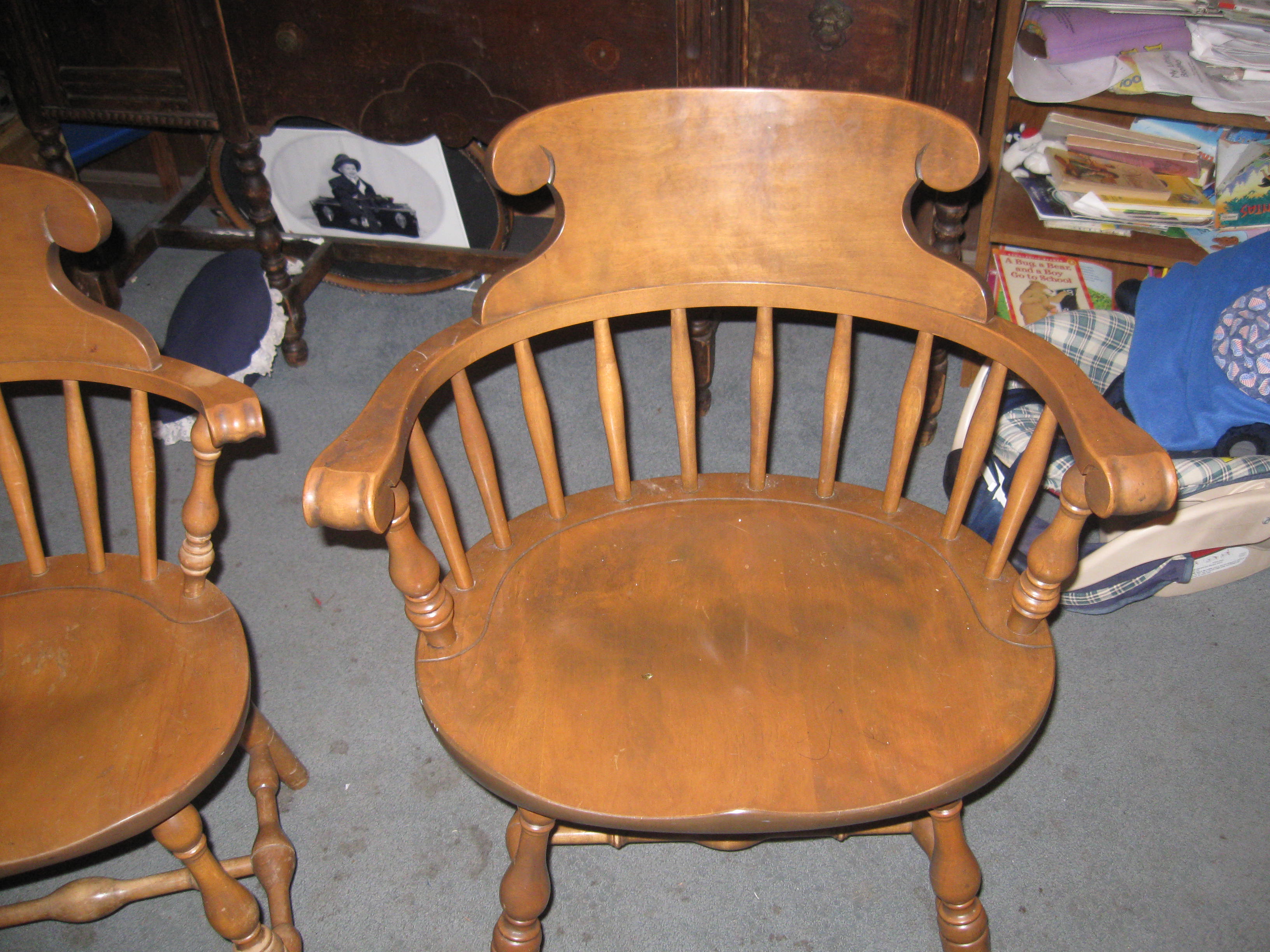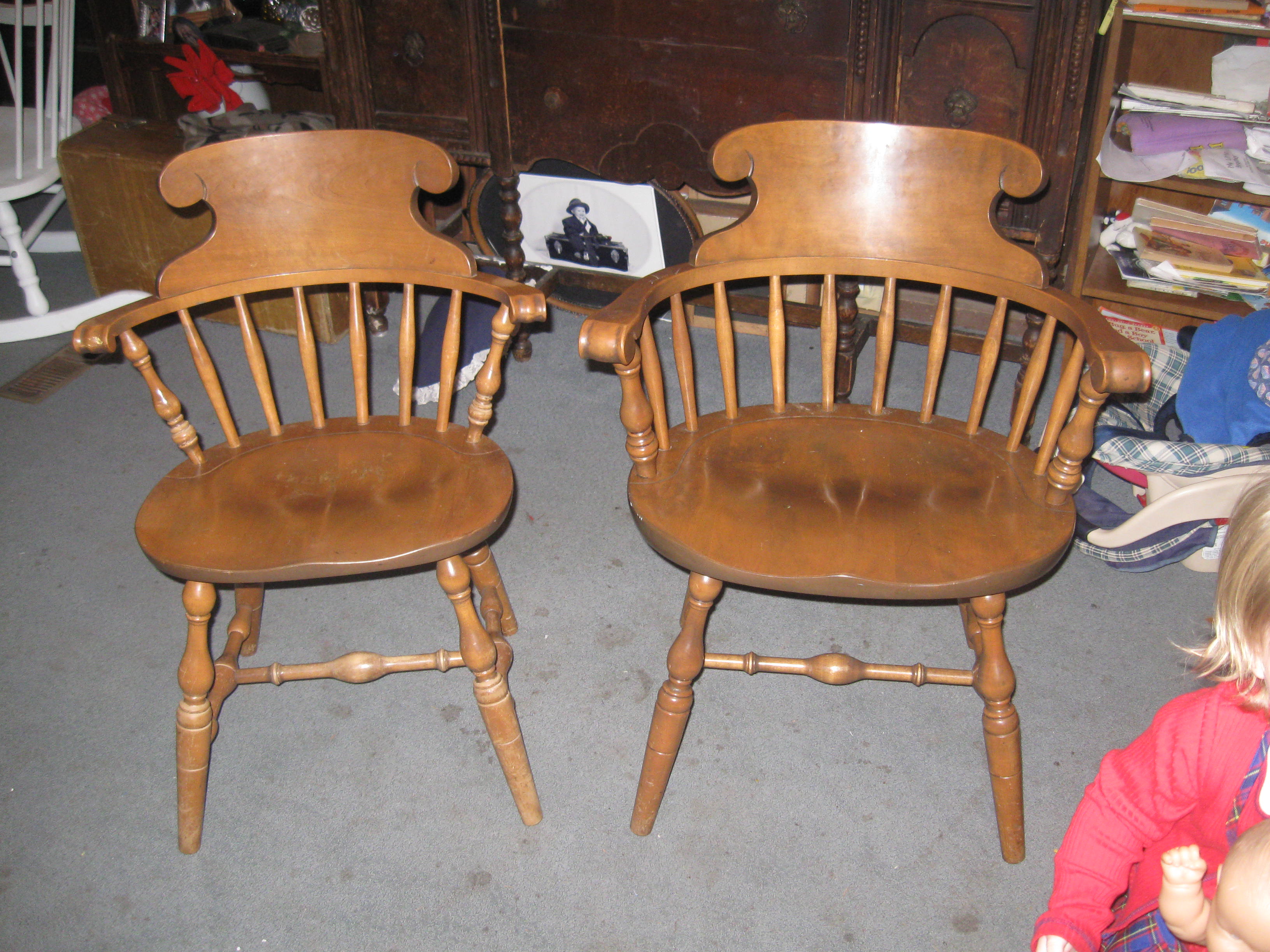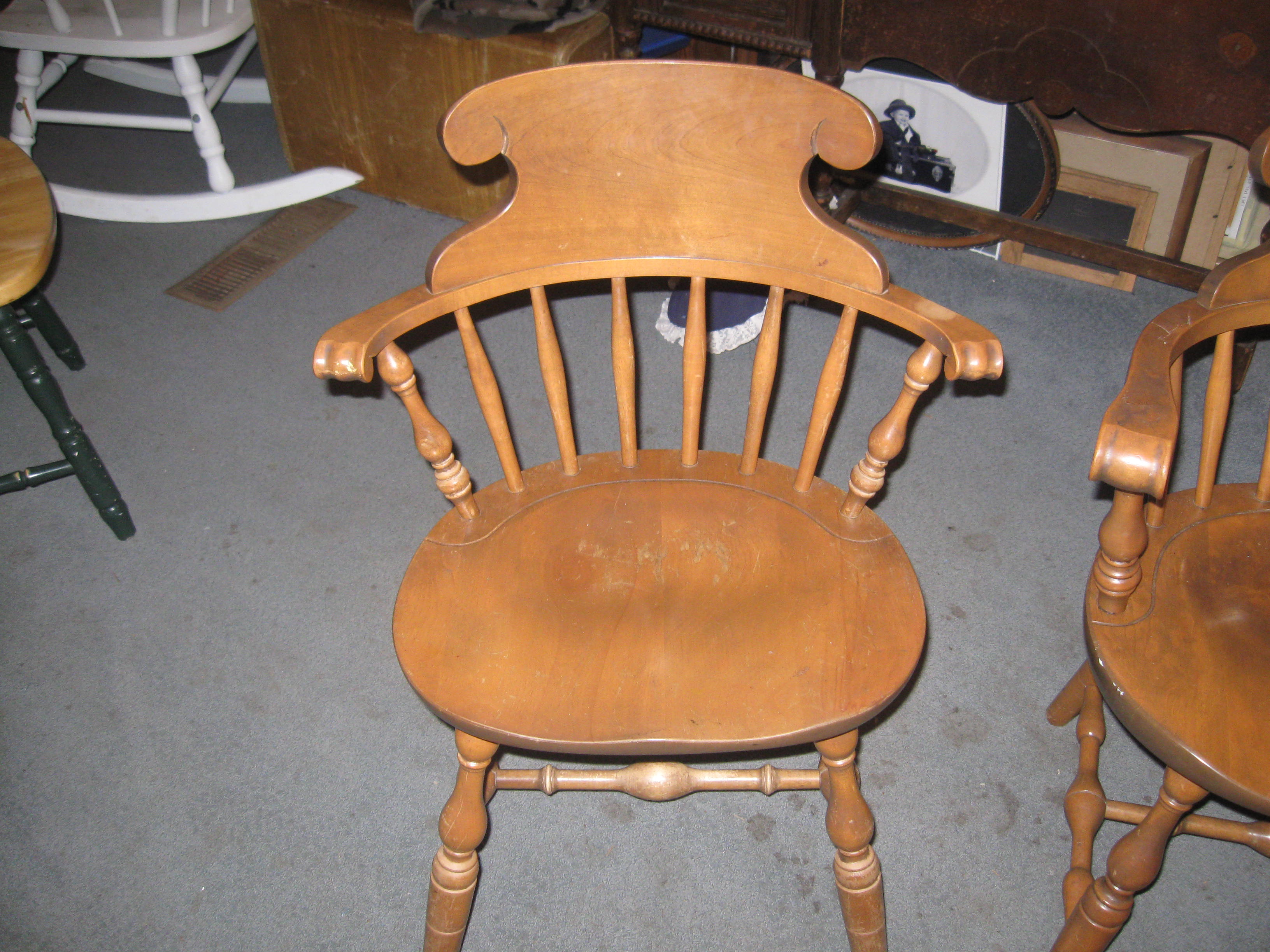 i have two small regular chairs and two captain chairs. they have the s. bent and brothers stamp on the bottom.