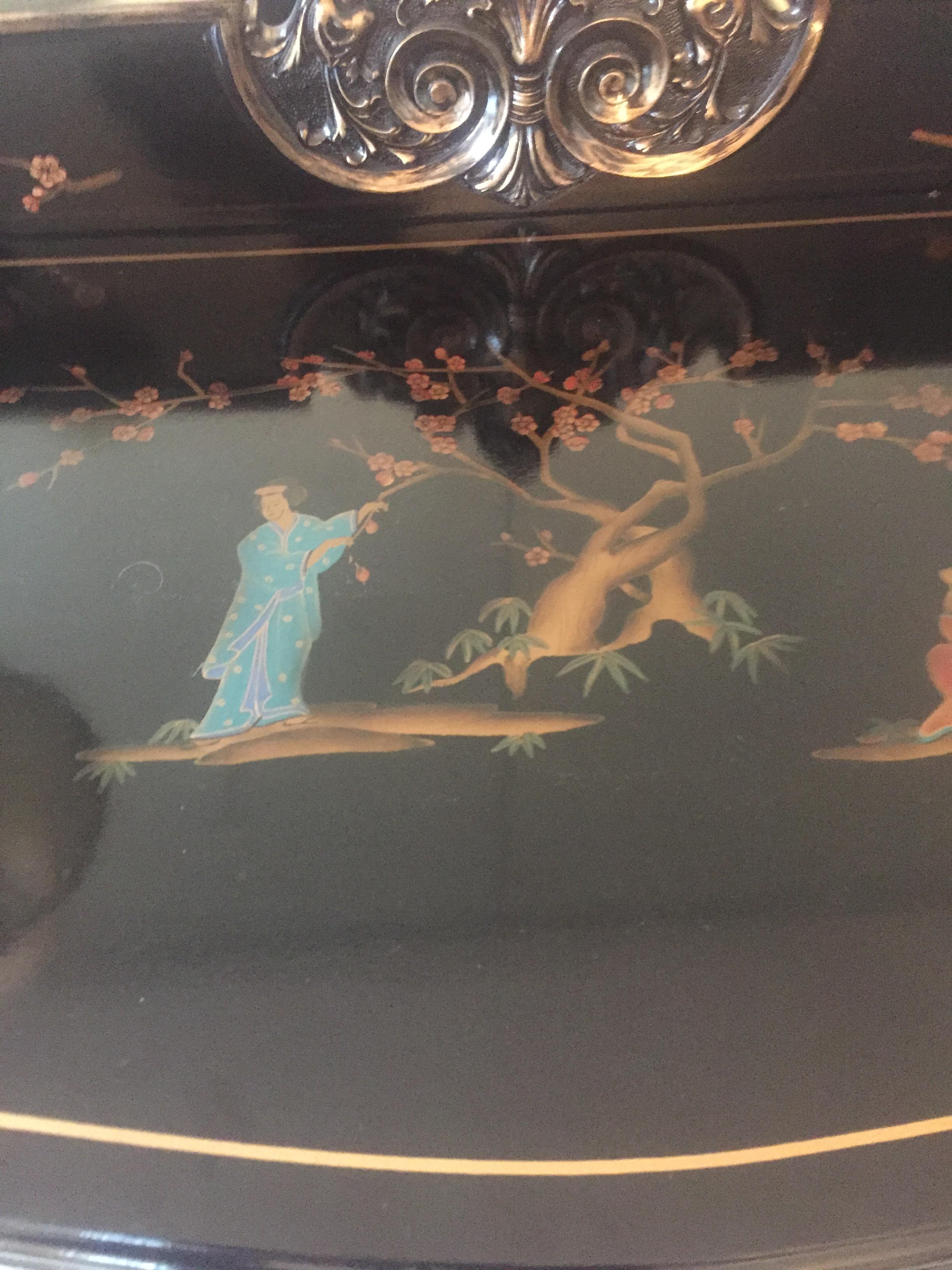 Hand painted by Katherine Henick of Salem Ma. (52" x 23" x 36" high. Asian motif in excellent condition.