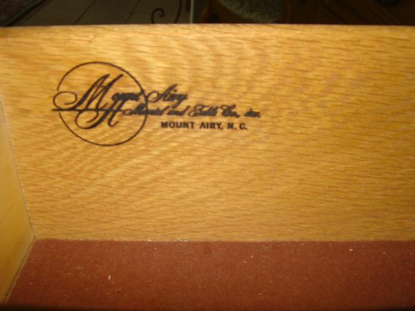 "Mount Airy Mantel & Table Co, inc" wood burned inside drawers