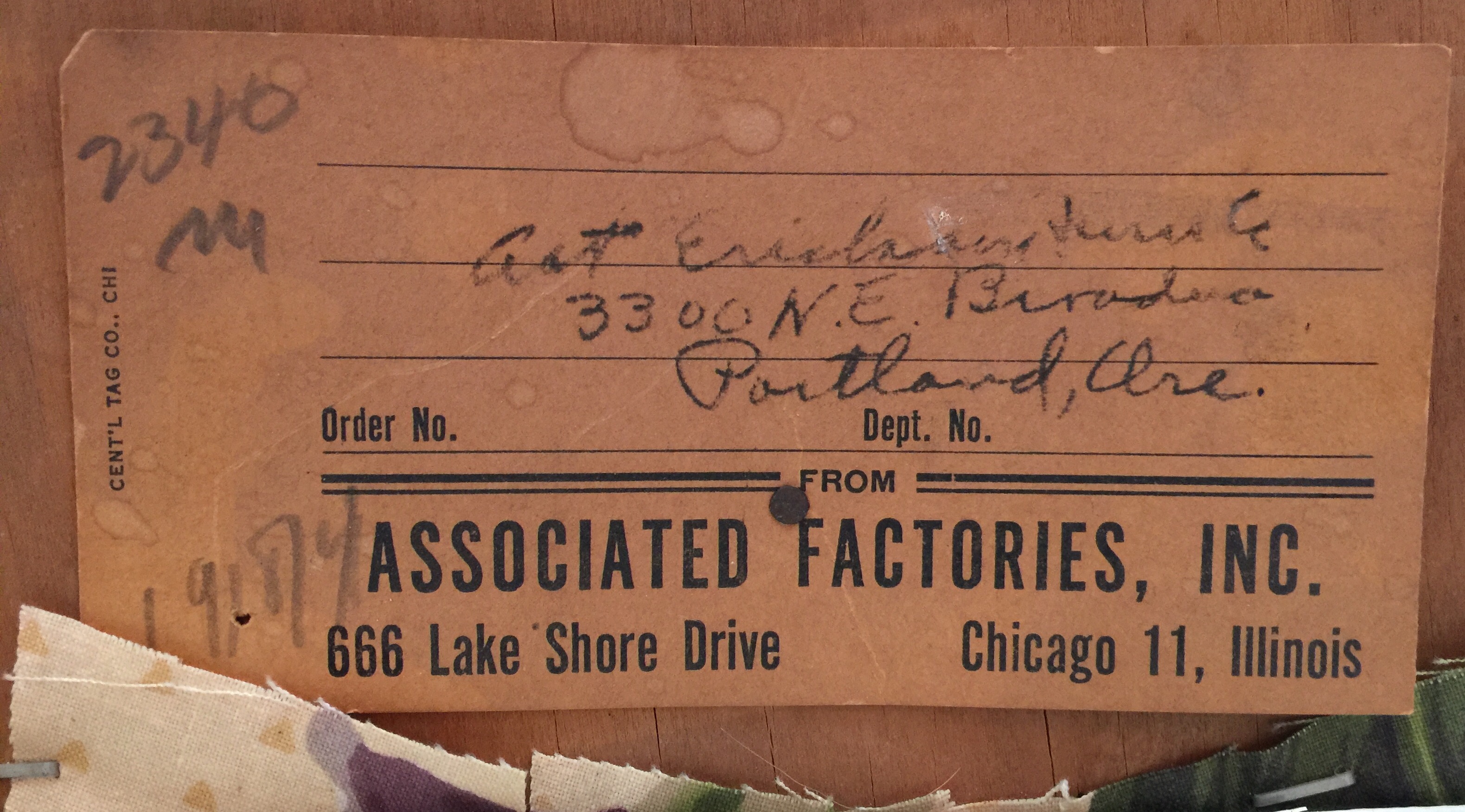 Distinguishing marks Ticket stapled to underside of chair