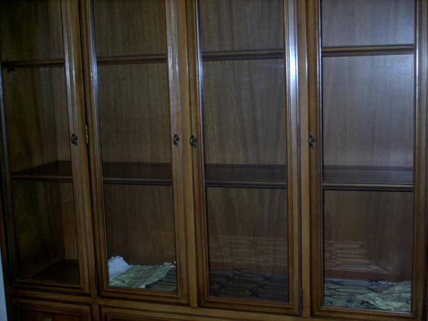 China Cabinet is in great condition. It has 4 glass doors at the top with 2 adjustable shelves 3 total) that run the full lenght of the cabinet. Below that is 3 drawers, 2 shorter on the outside and 1 wider in the middle. Below that is 4 solid wood door conceiling 1 removable shelf in each side. The 2 doors on the left open, you have 2 shelves (base and one removable). Same with the right two doors.
