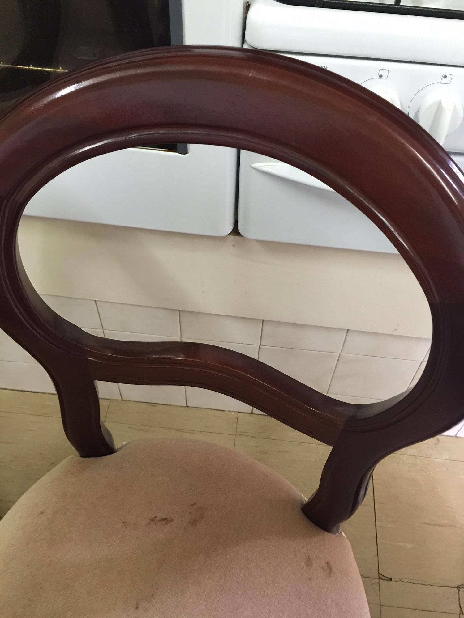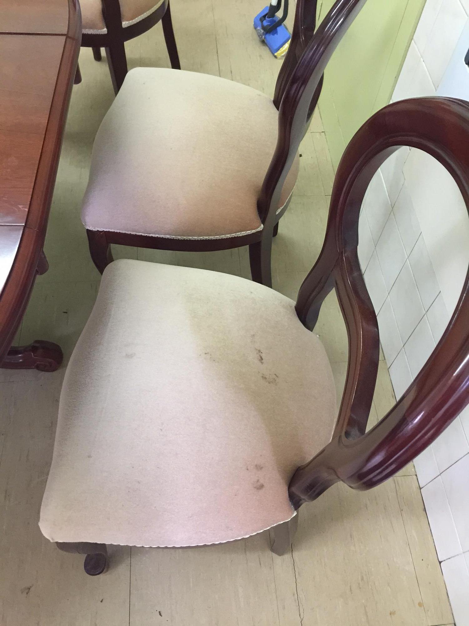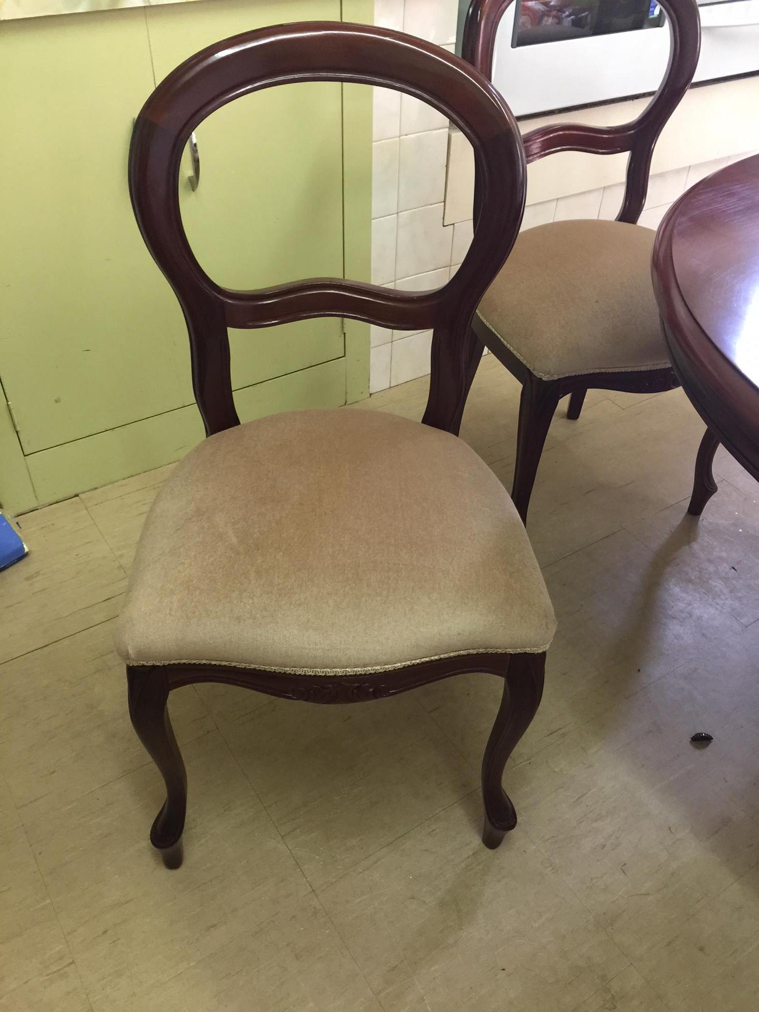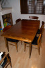 I inherited this dining table and 6 chair set from my great grandparents. I am not sure how old it is exactly but it is a beautiful piece.