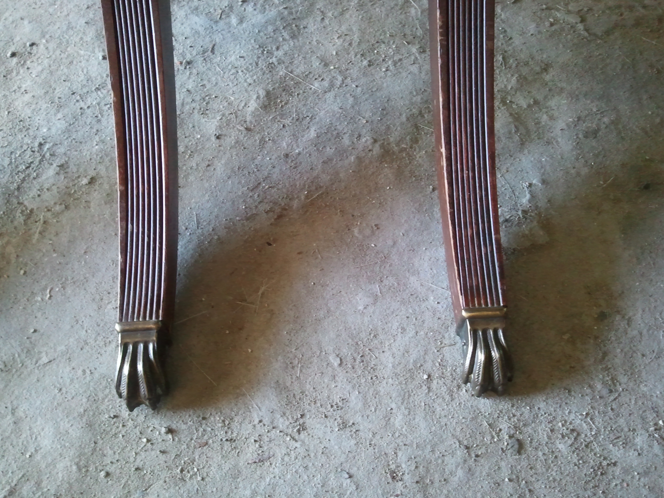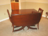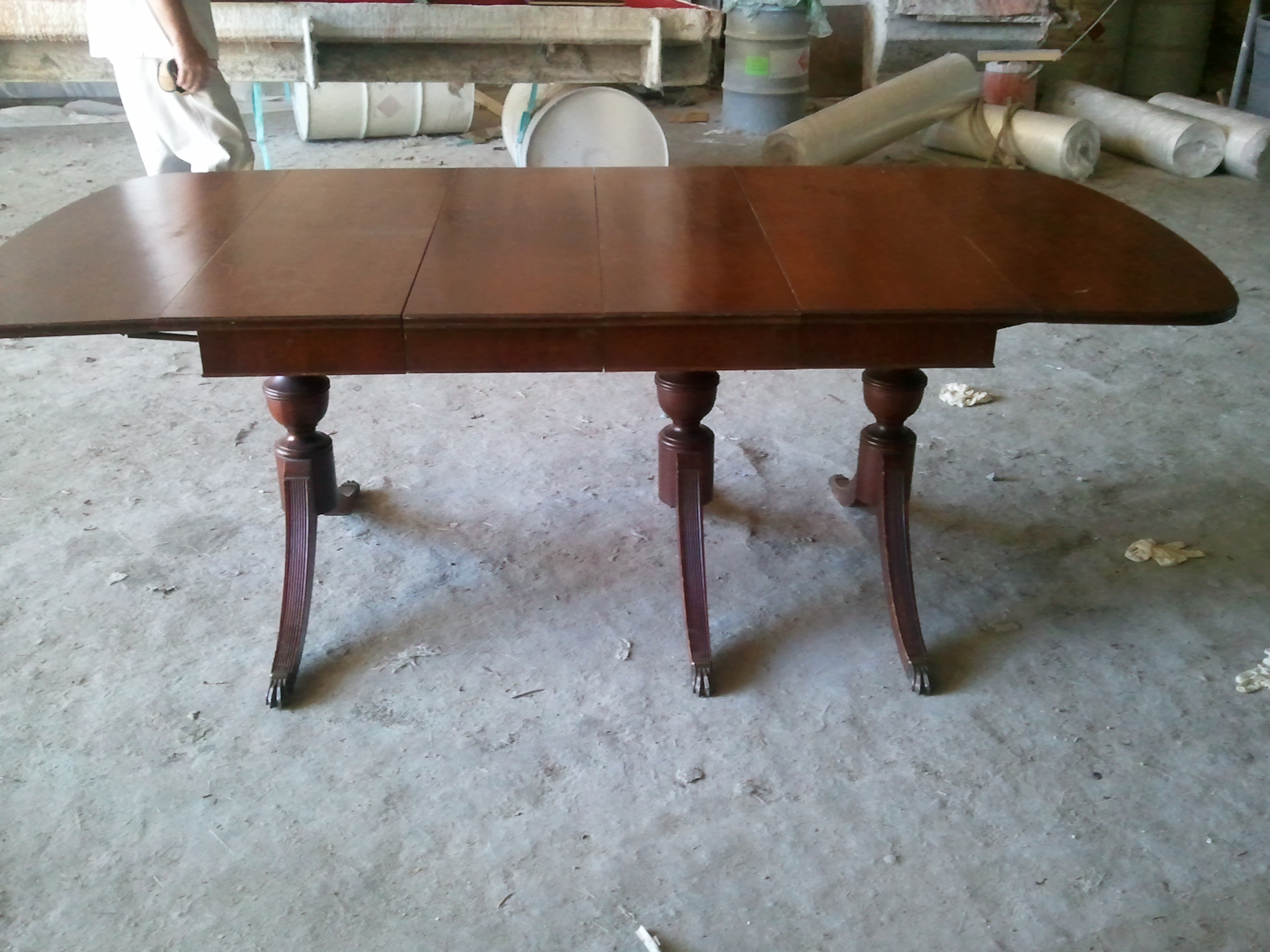 I purchased this table at a thrift store for $85. The only marking I could find on it were the numbers "701-44" engraved underneath. It came with two leaves (apparently I am missing 1 leaf). It looks like a real quality piece. The leaves have small wooden pegs that attach them to the table. It also has claw feet but they are hollow, not solid brass. I would love to know more about this table, especially the style/era it is from. Maybe if i can find out this information i can find a leaf to fit it!