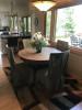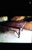 The set was given to my uncle who took it in for refinishing/refurbishing but it was never finished. The table is still taken apart, waiting to be re-finished and put back together. There are some tiny pieces of the detail work that have popped off since the refinishing process started. There's typical wear and tear as it was used all the time. The seats were hand embroidered by my great grandmother. I can't find any distiguishing markings to tell me who it was made by. I'd like to sell it. Hoping someone has the time and money to bring it back to it's glory. =)