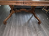 Tables like this tend to date from the second Quarter of the 20th Century and have often see the hard use of over 80 years now. Tables like this generally require refinishing and repairs, which can exceed their cost of replacment with another, but in better condition. At auction comparable tables to this one often sell for less than $200.00.