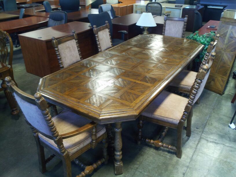 this is a Thomasville dining table with 6 chairs 4 without arms 2 with.