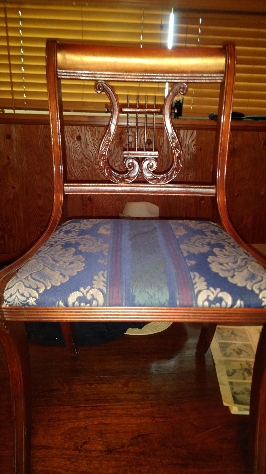 This dining table and chairs were previously used in the dining hall of a Harvard University residence hall. The chairs were manufacured by Eustis Chair (see listing for "Ivy League Arm" chair). The company informed me that the chairs sell for $569.00 each when sold in a bundle of 10, which is the smallest quantity in which they are sold. Comparable prices for other Eustis chairs are listed on this page of their website. The furniture is perfectly sturdy and stable, though there is moderate wear on the edges and corners, as shown in the photos. I'm not certain how old the furniture is, but the Eustis company has only been in business since the early 1990s.