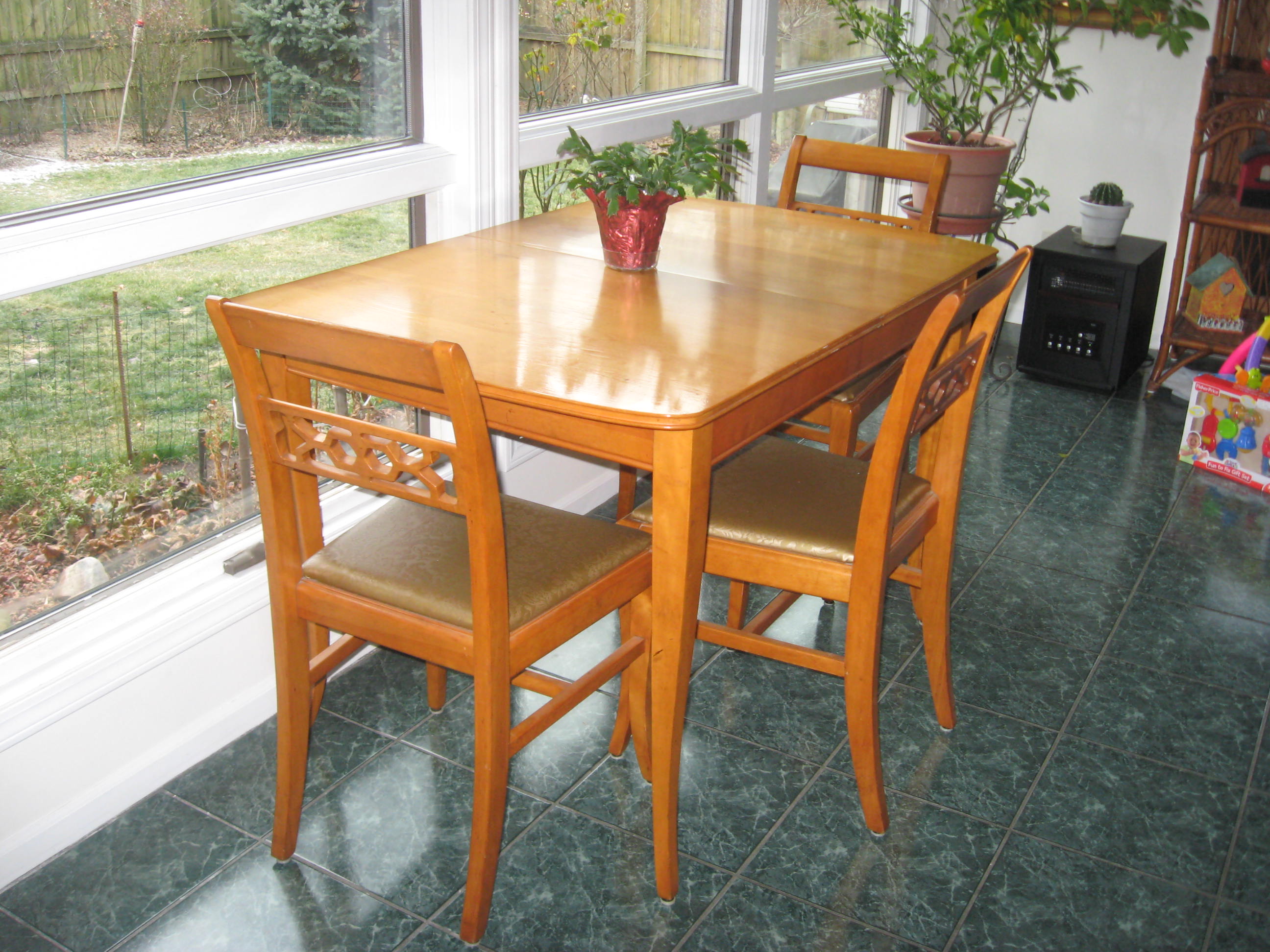 I purchased this dining table with leaf and 4 chairs from thrift shop, was wondering information on when it was made and how much it might be worth.