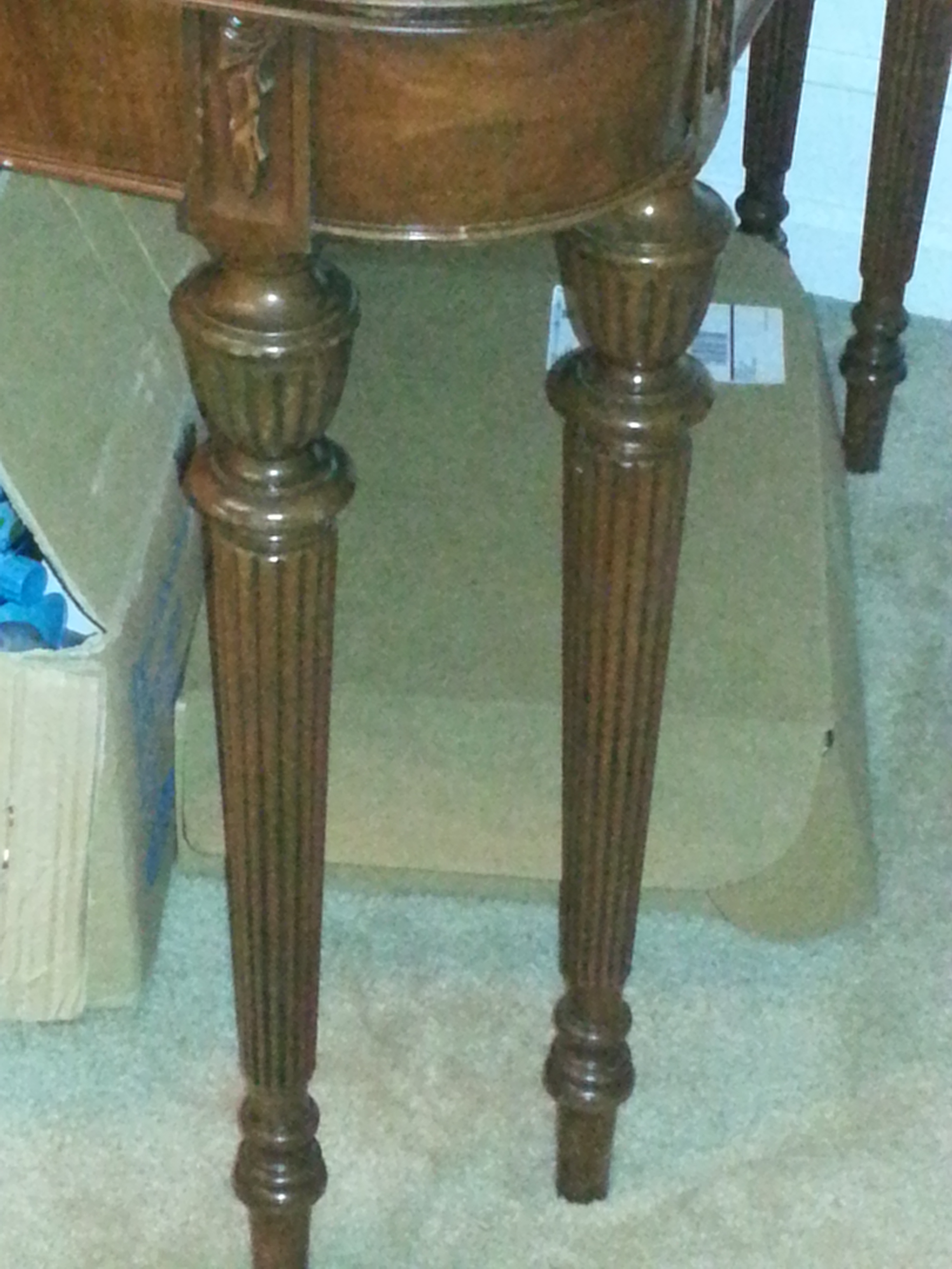 Dining table with leaf and four chairs, one has the arms. chairs have been covered. I am not really looking for the value as much as I am just looking for the information on this set. It has "740" hand-written underneath all the pieces.