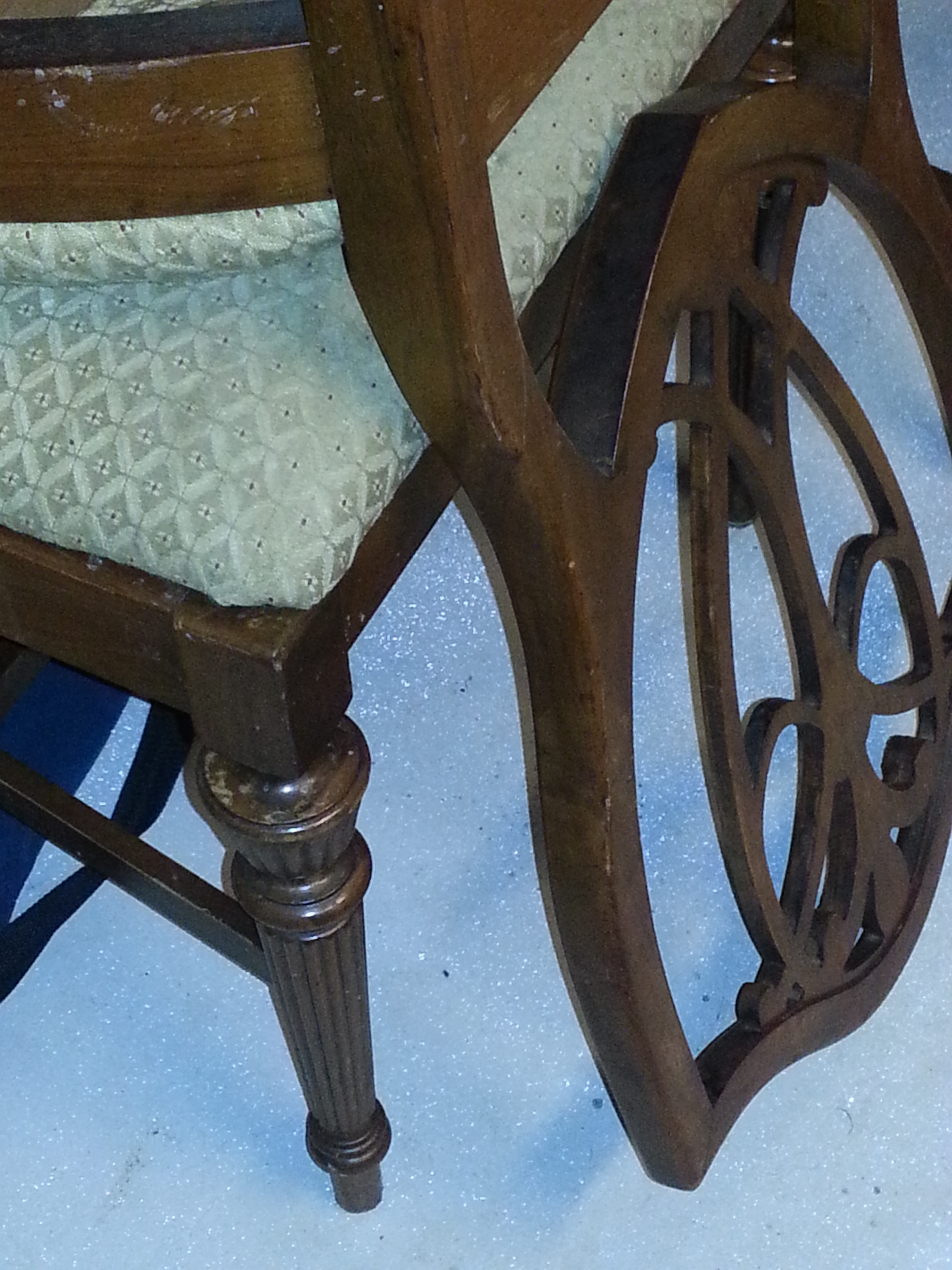 Distinguishing marks "740" hand written on all undersides of chairs and table