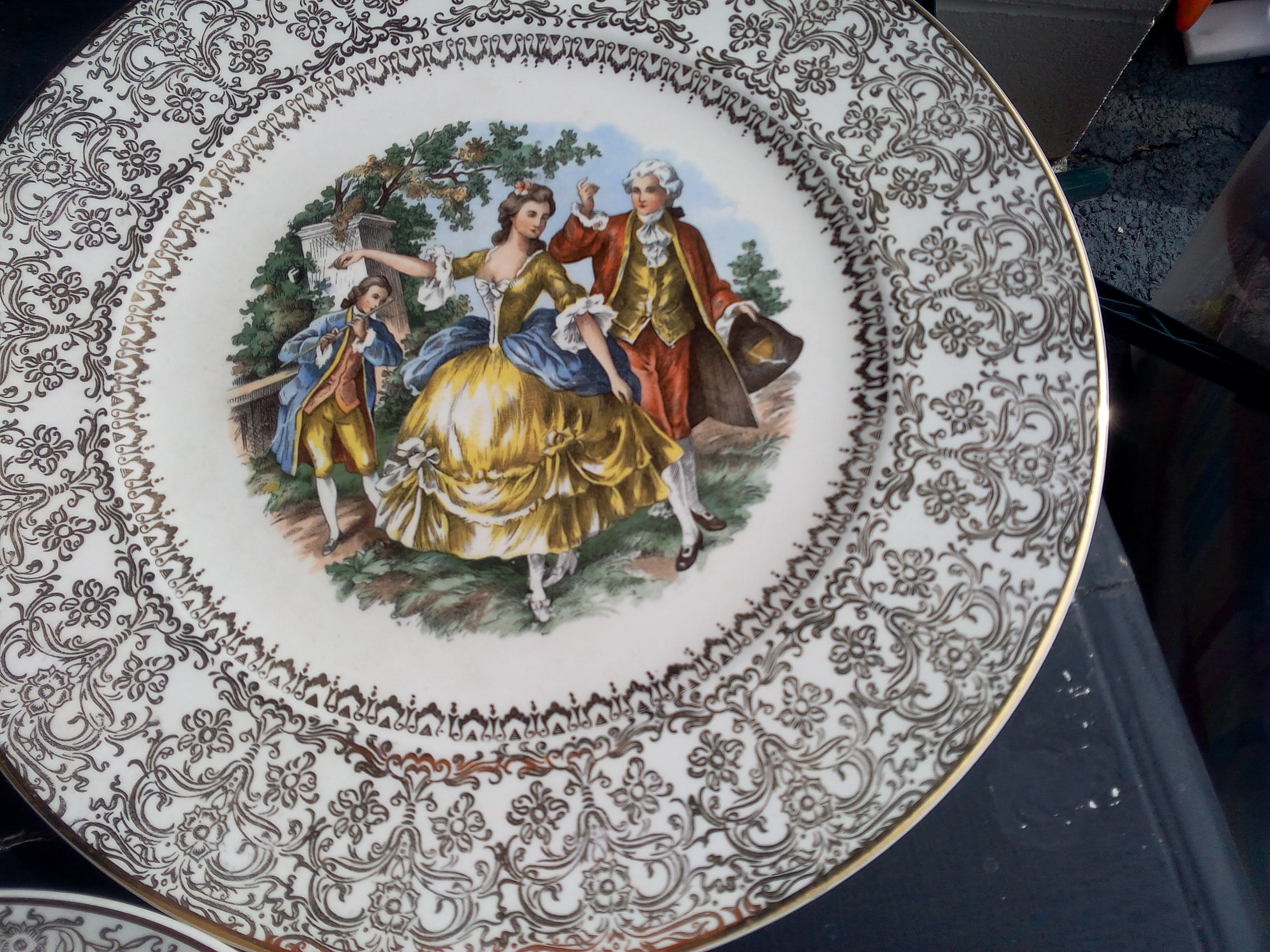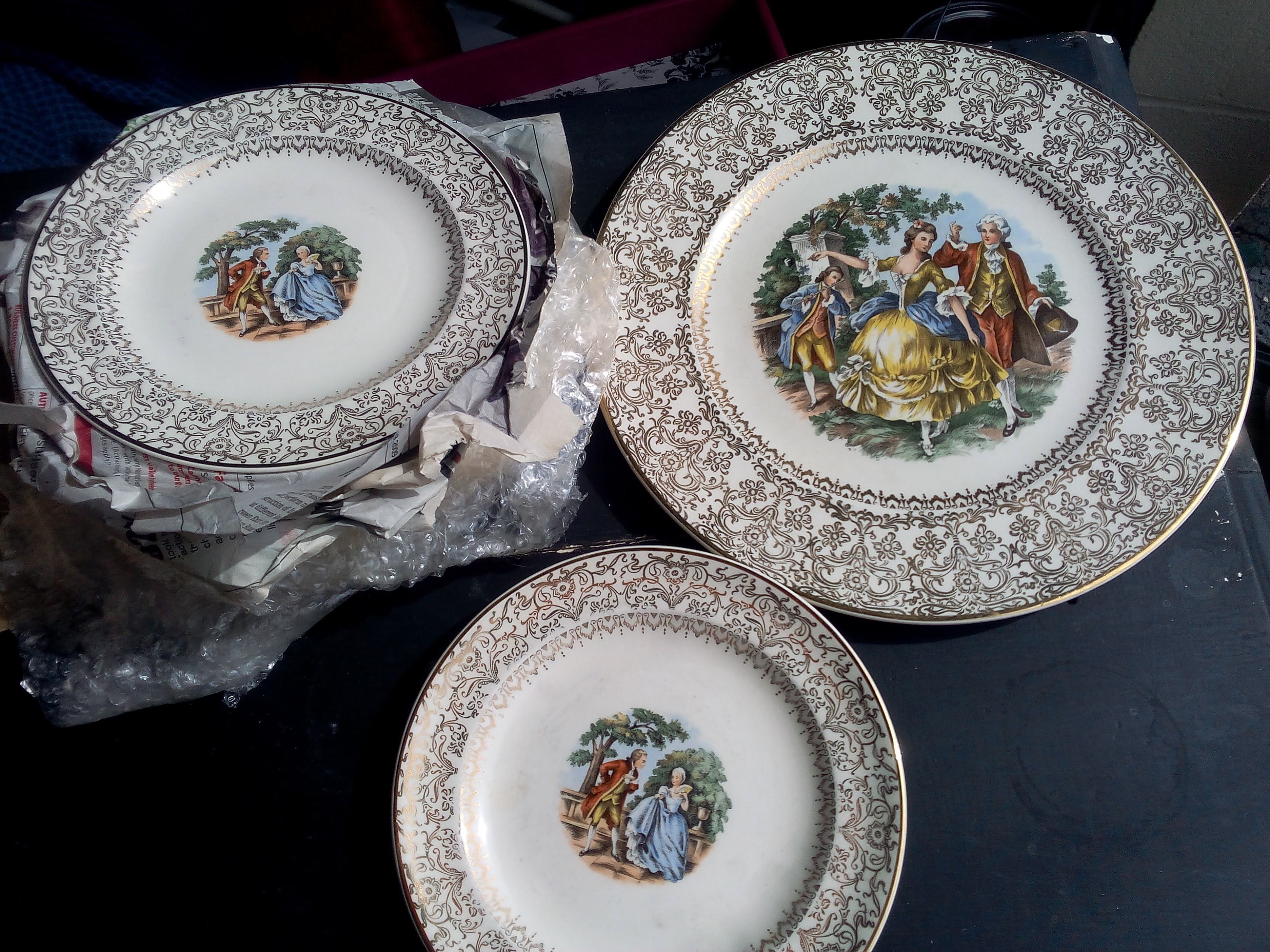 I don't know if these are antique. I got them along with a pair of similar plates at a thrift store simply because I thought they were pretty. I know some dinnerware like this are genuine antiques, but unsure (doubtful) these are. I don't see a recognizable manufacturer stamp on the bottom.