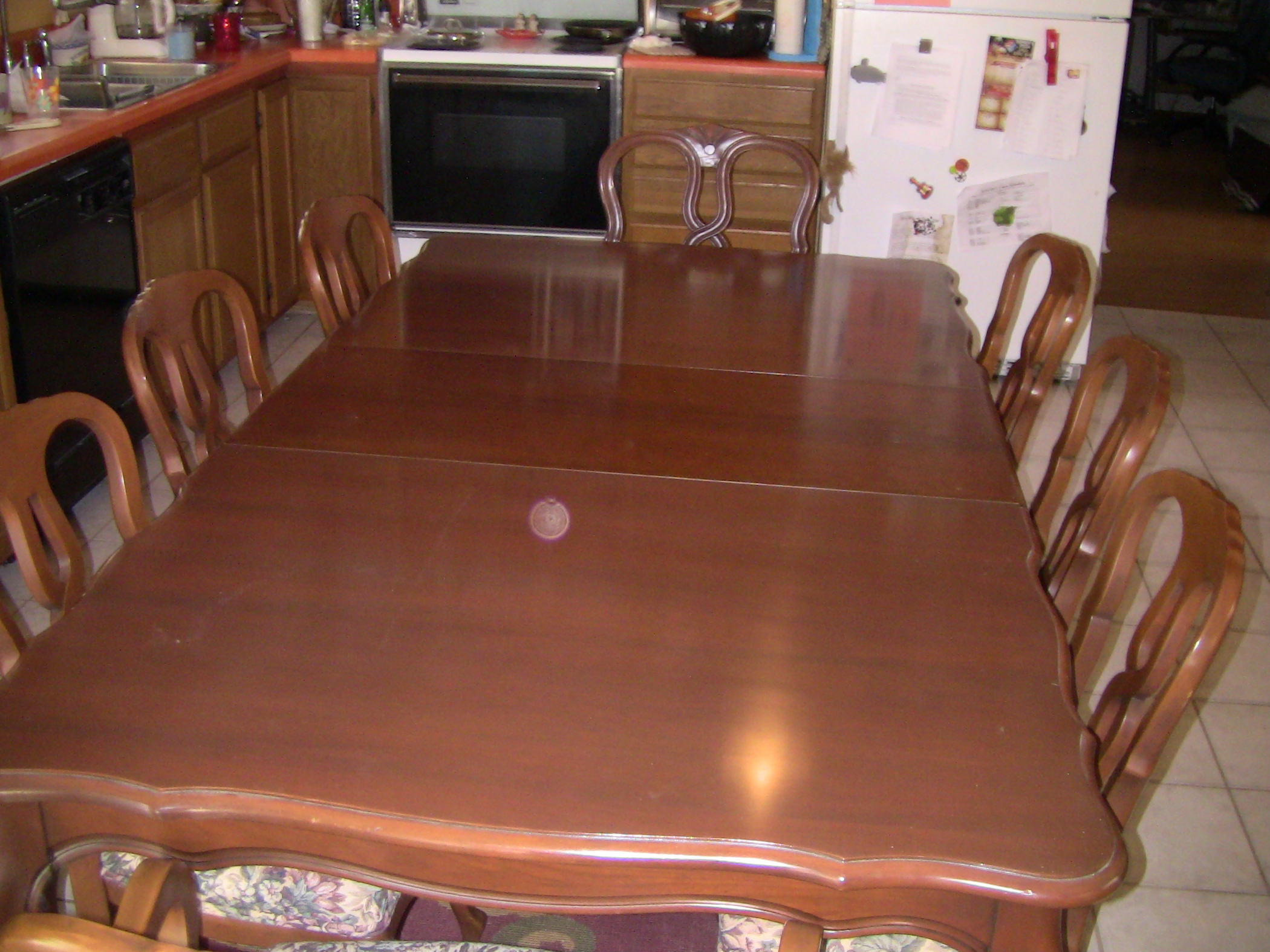 The table is from the early 1950's and has 6 regular chairs and two with arms 8 total. It has a custom pad and three leafs to it. I was told it was cherry oak and was restored about 8 years. I also have the matching hutch with 8 drawers. The hutch has a tag on it it and is a John Widdicomb by Raph Widdicomb. I have a small house and need to sell them. Thank you for any help with how much it is worth.