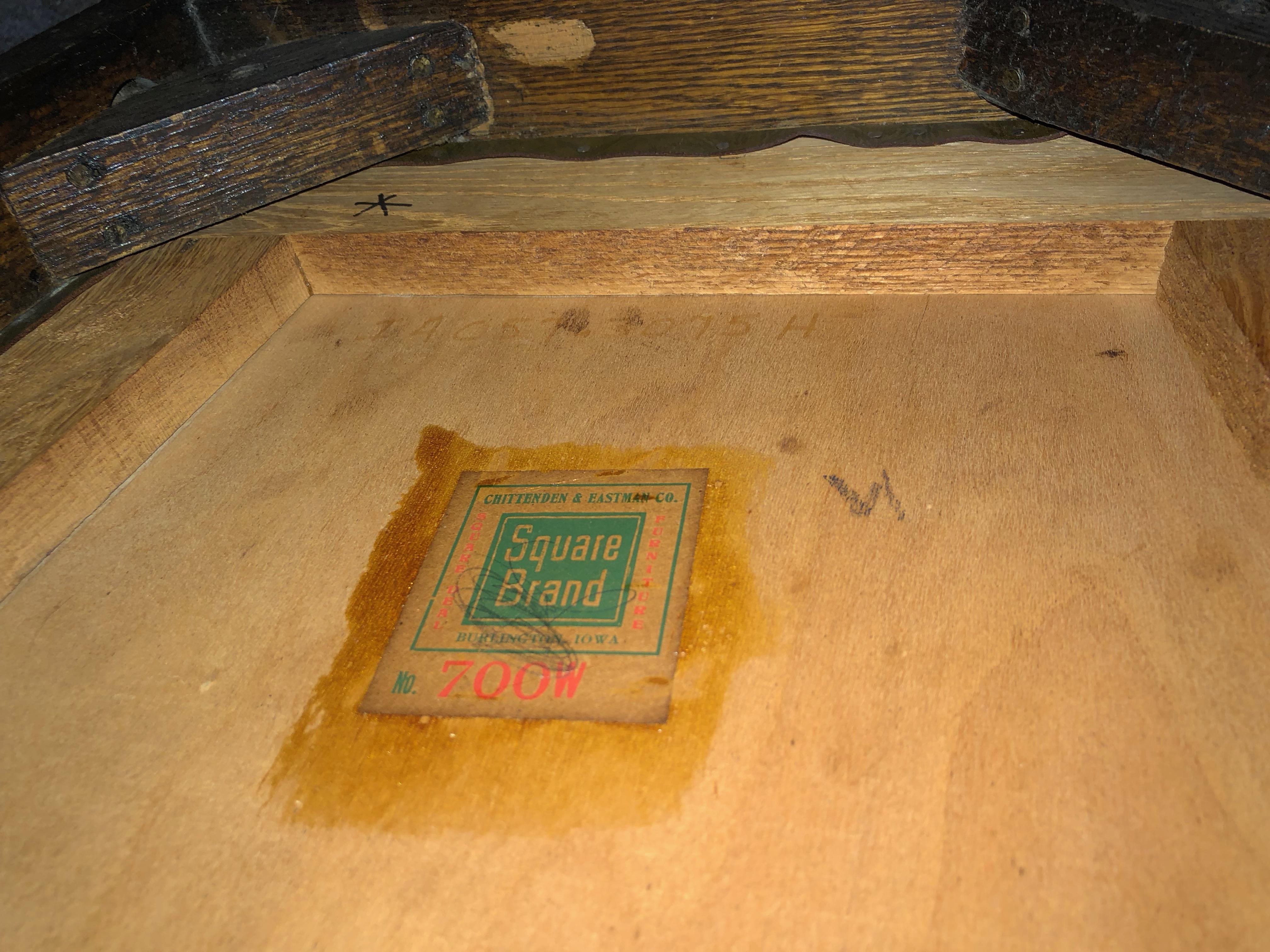 I have a dinning room set that includes an oak table, 6 chairs, a china cabinet, and a buffet/side table. They are all matching but I know nothing about them. They were in a relatives family for years and handed down to them. They had it for 50? years. There is a lable on the bottom of one of the chairs that says, "Chittenden & Eastman Co' and "Square Brand". I'm checking to see if anyone know s anything about this and the value it might have. It is in excellent condition.