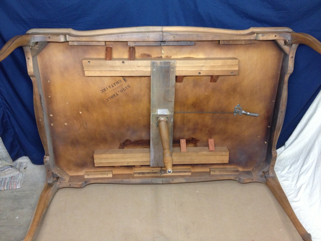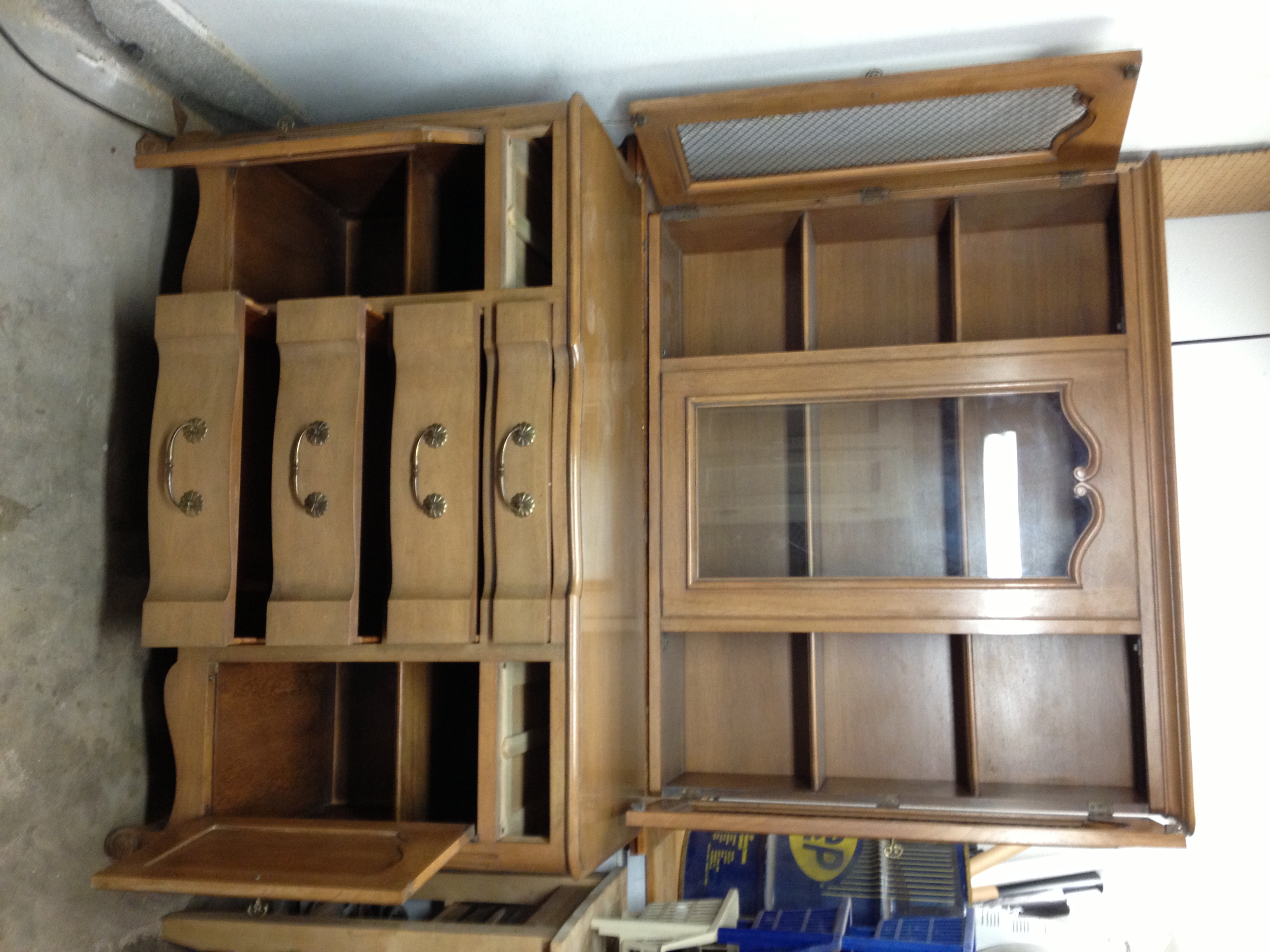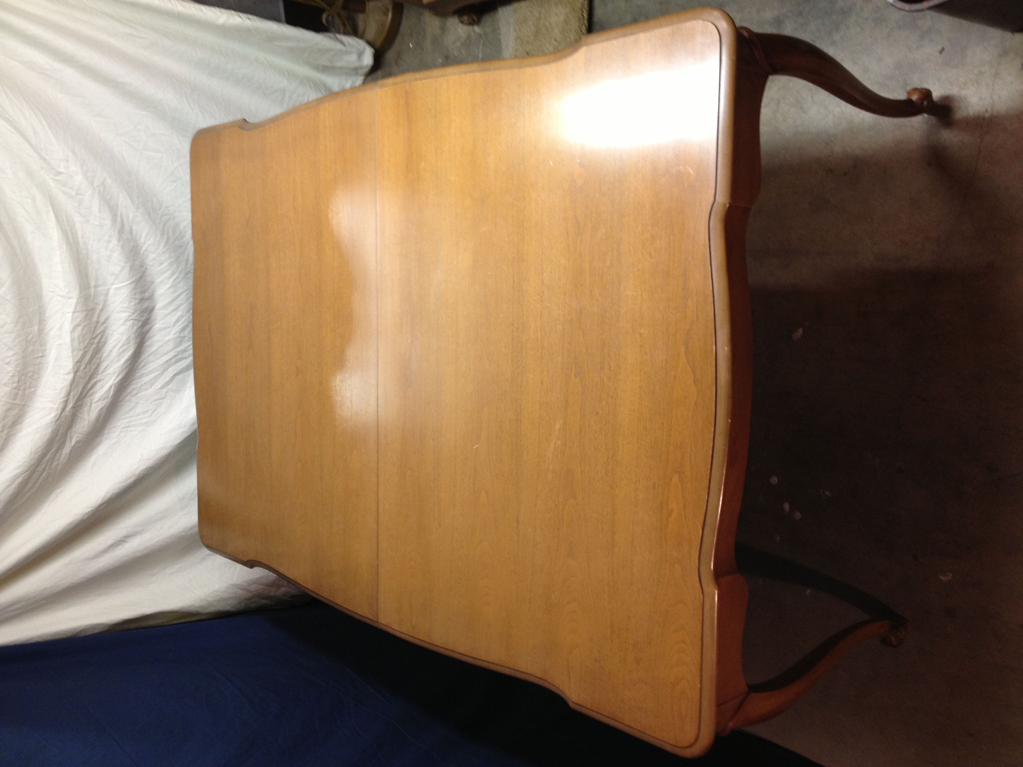 mt airy early 1960 5 legged table w6 chairs, 2 leaves,folding protective cover, a buffet with hutch that fixes atop the buffet. all these pieces are Chataine style. the two droors not picured r in my possesion just not at the time the photos were taken.
