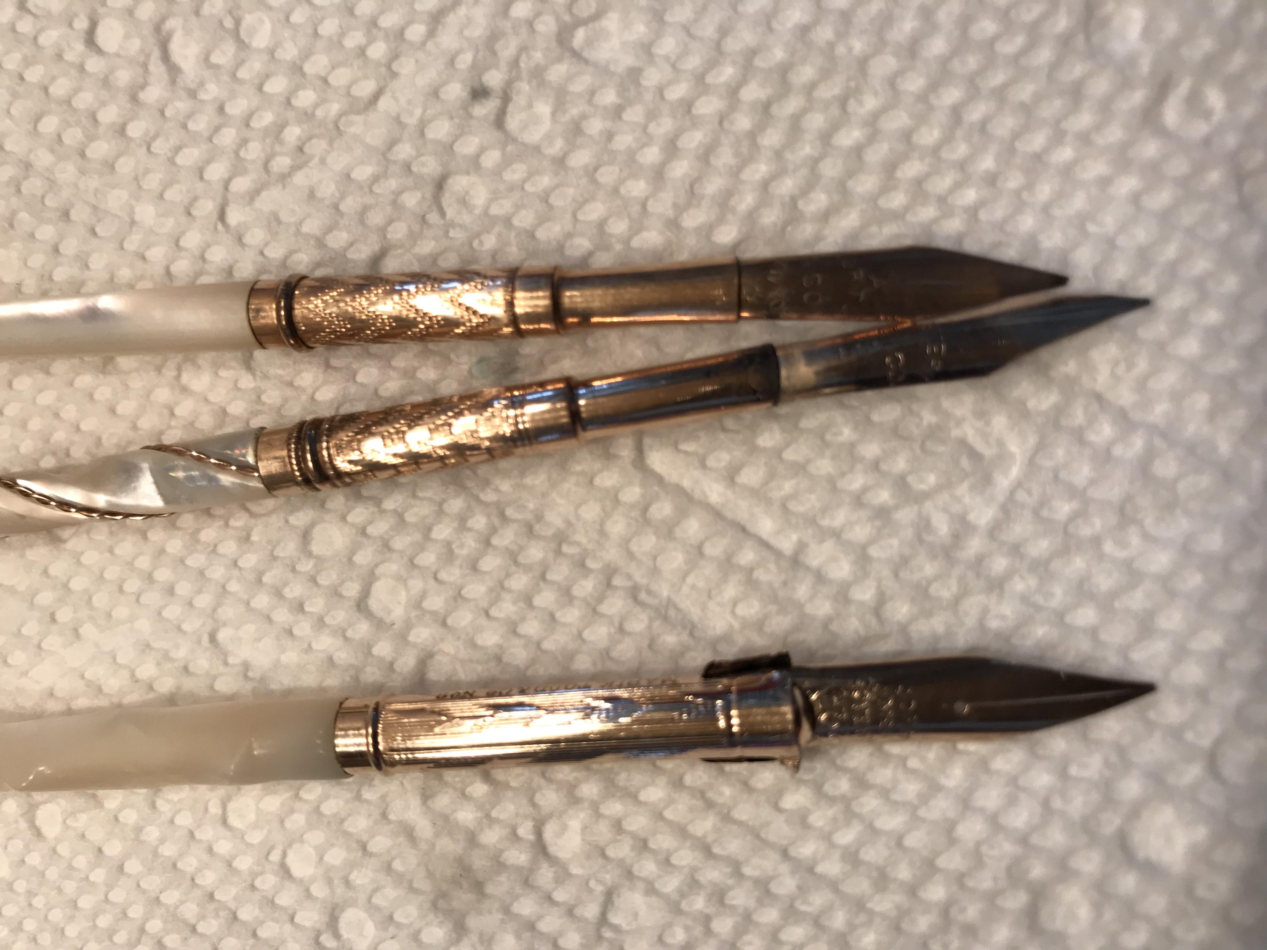 3 Dip Pens Gold NIBS Mother Of Peal