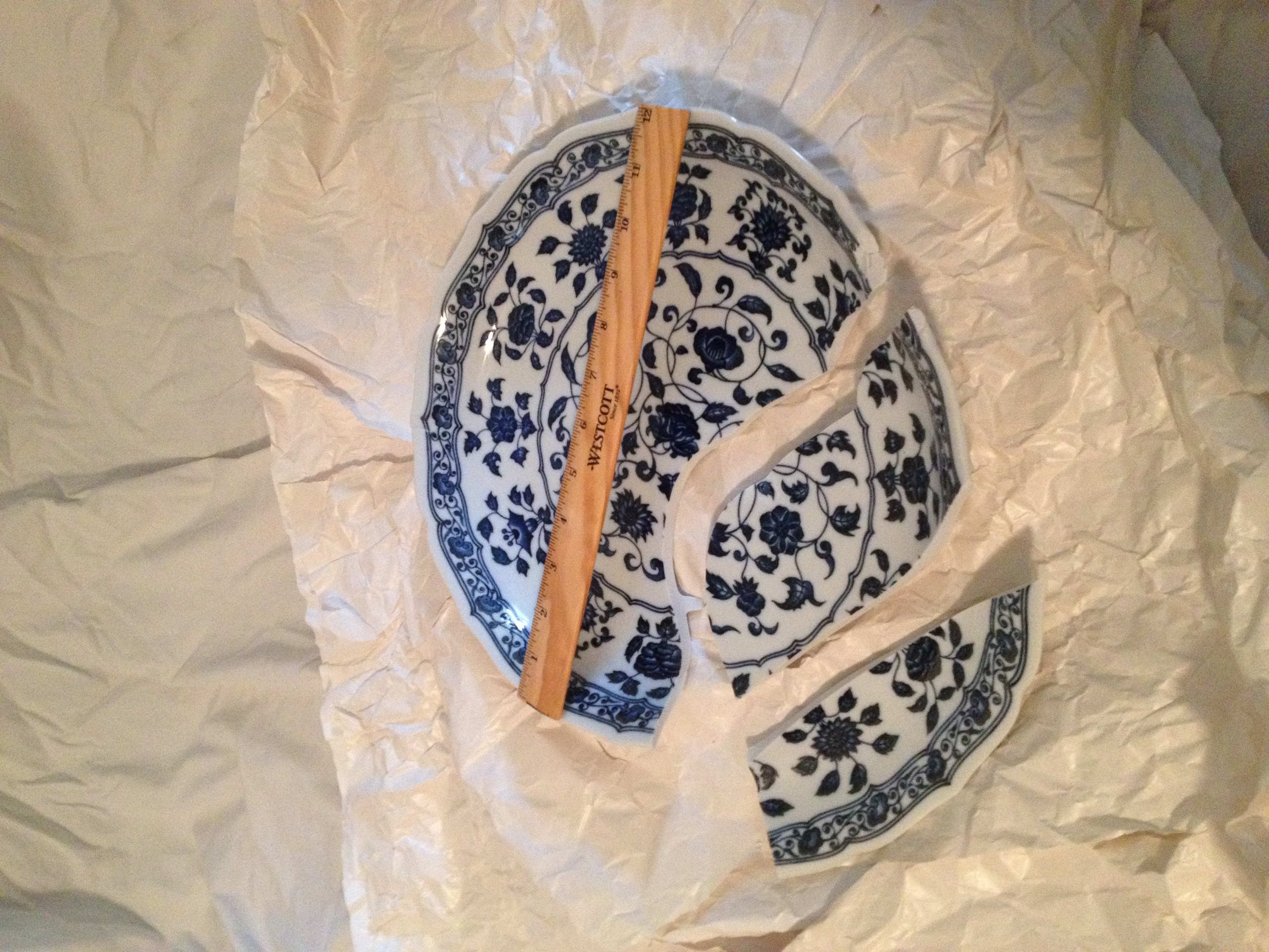 This is an heirloom piece. I found it online but am unsure if it is a copy or the real deal . What I found shows a likeness to Ming Dynasty Porcelain, Yongle style, Jingdezhen, China. I read that these sort of dishes were gifts to visiting diplomats as the people of China did not eat out of such large dishes.