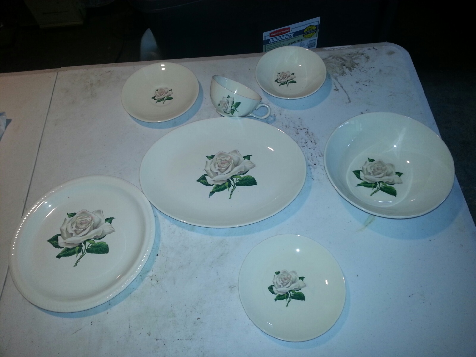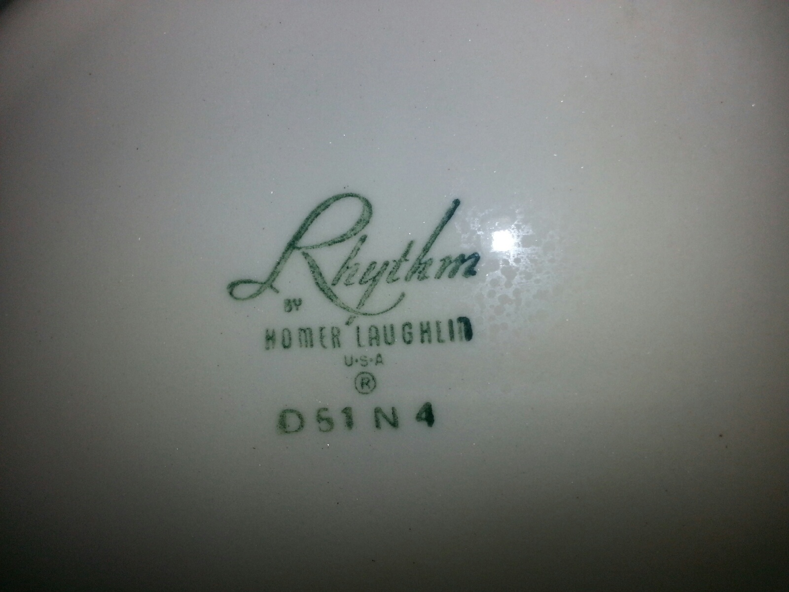 There is a set of 6 of these dishes.  They are in mint condition.  I have tried searching but have not found this pattern.  The W S George is on the bottom of the dinner plates and the Rhythm is on the bottom of the serving plate.  Does anyone know anything about these dishes/