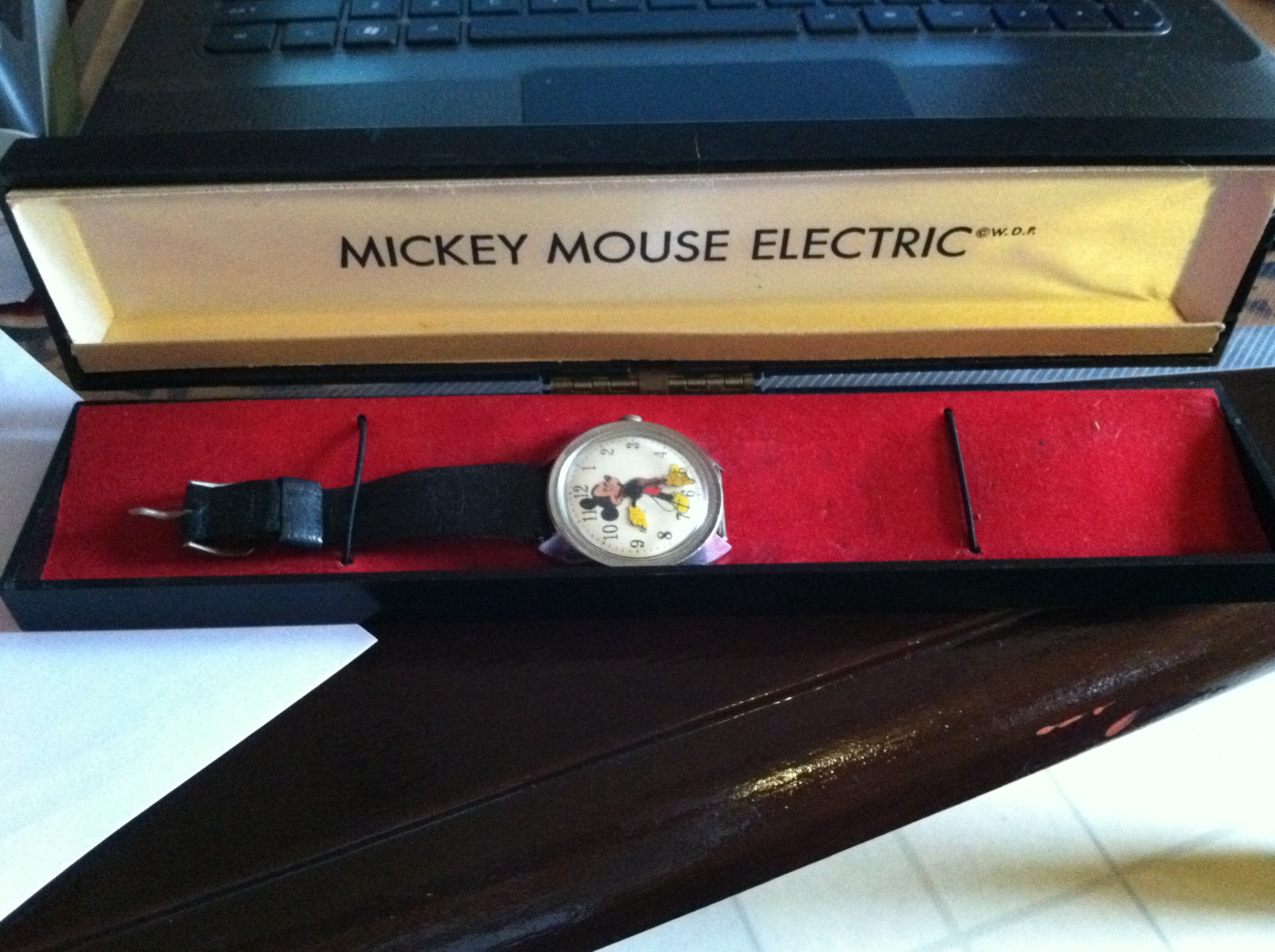 This a Disney Mickey Mouse Timex Watch approx. 42 yrs. old, still in original box. Left side of wrist band is missing but otherwise excellant condition.