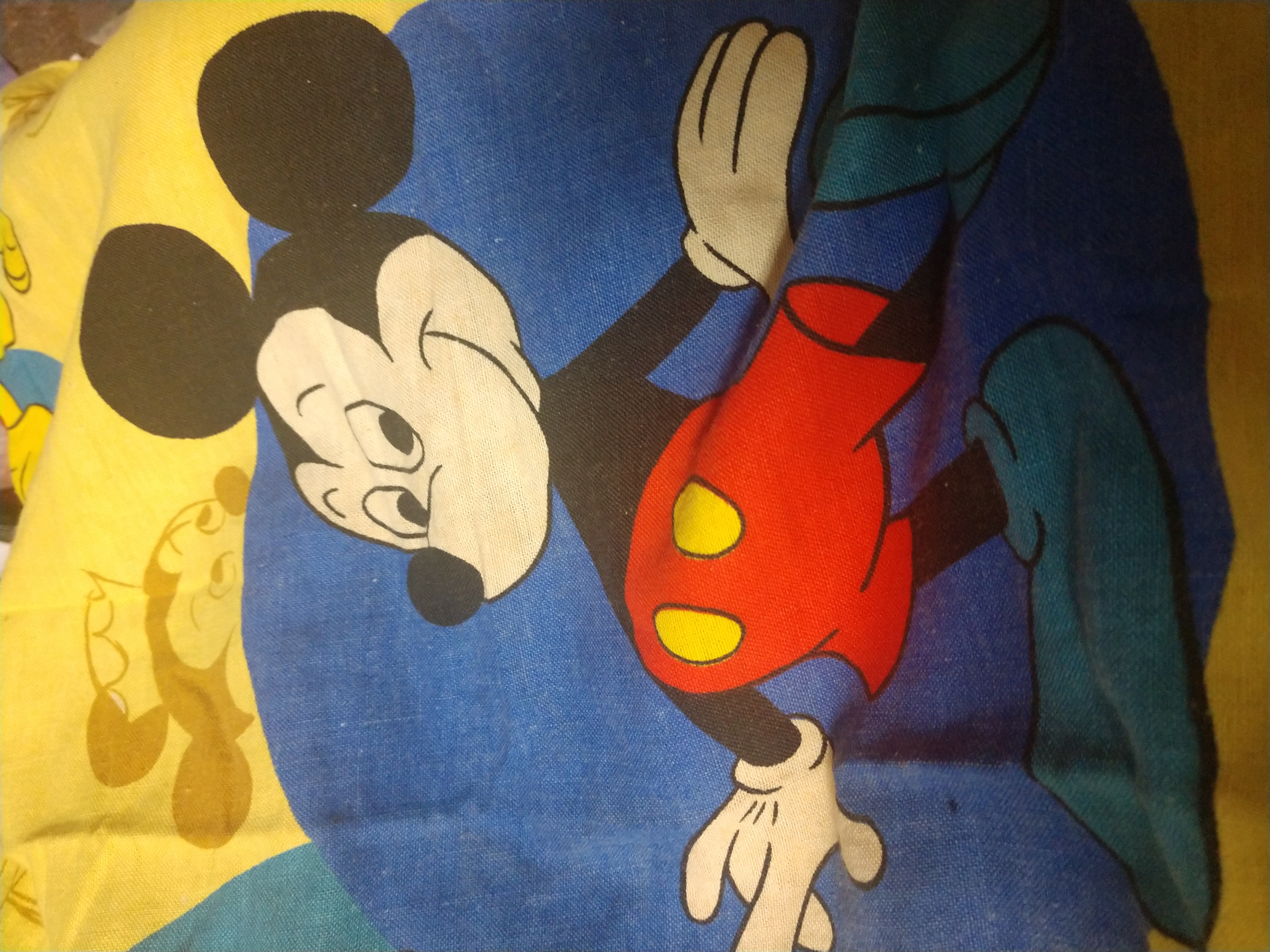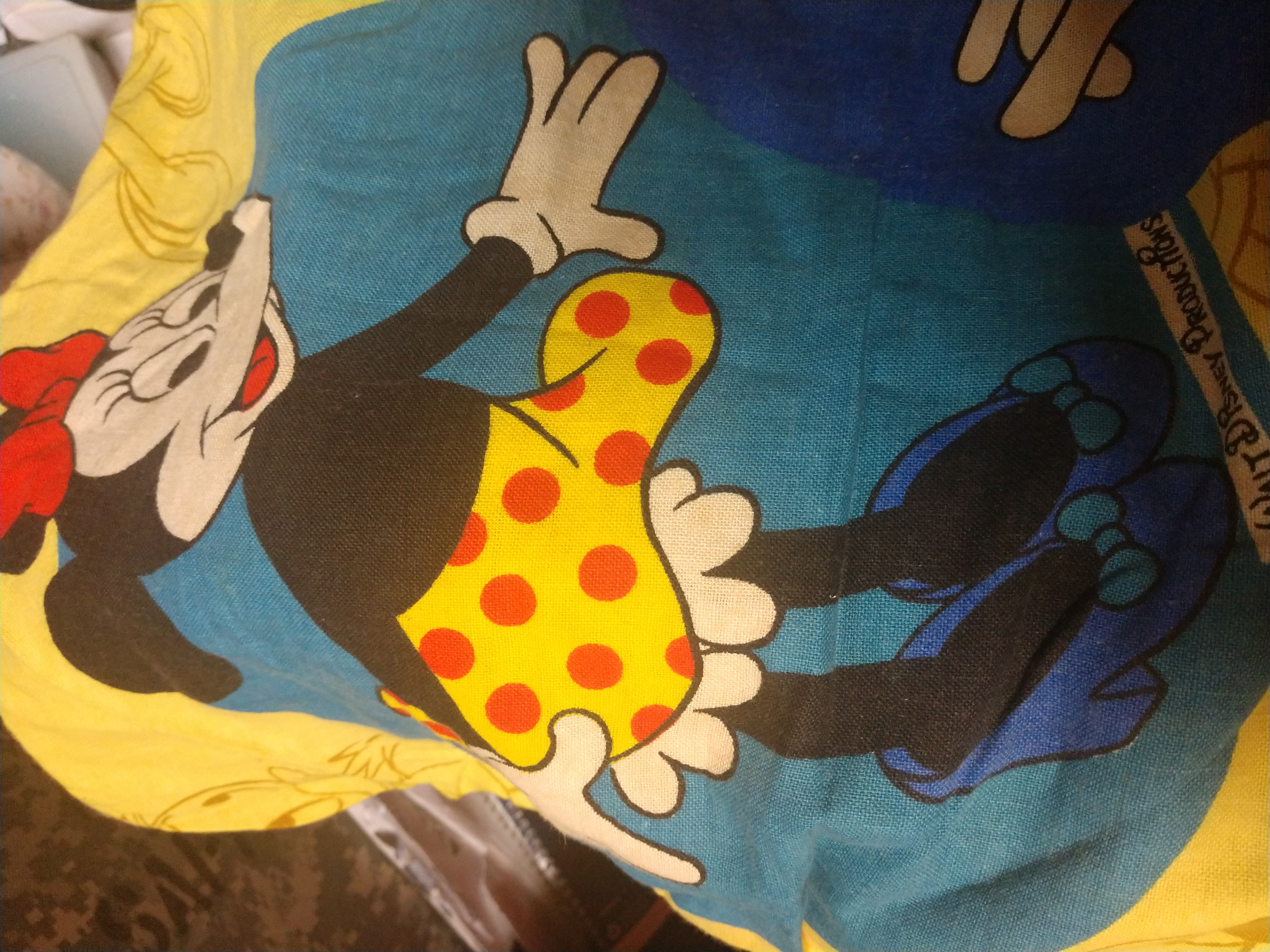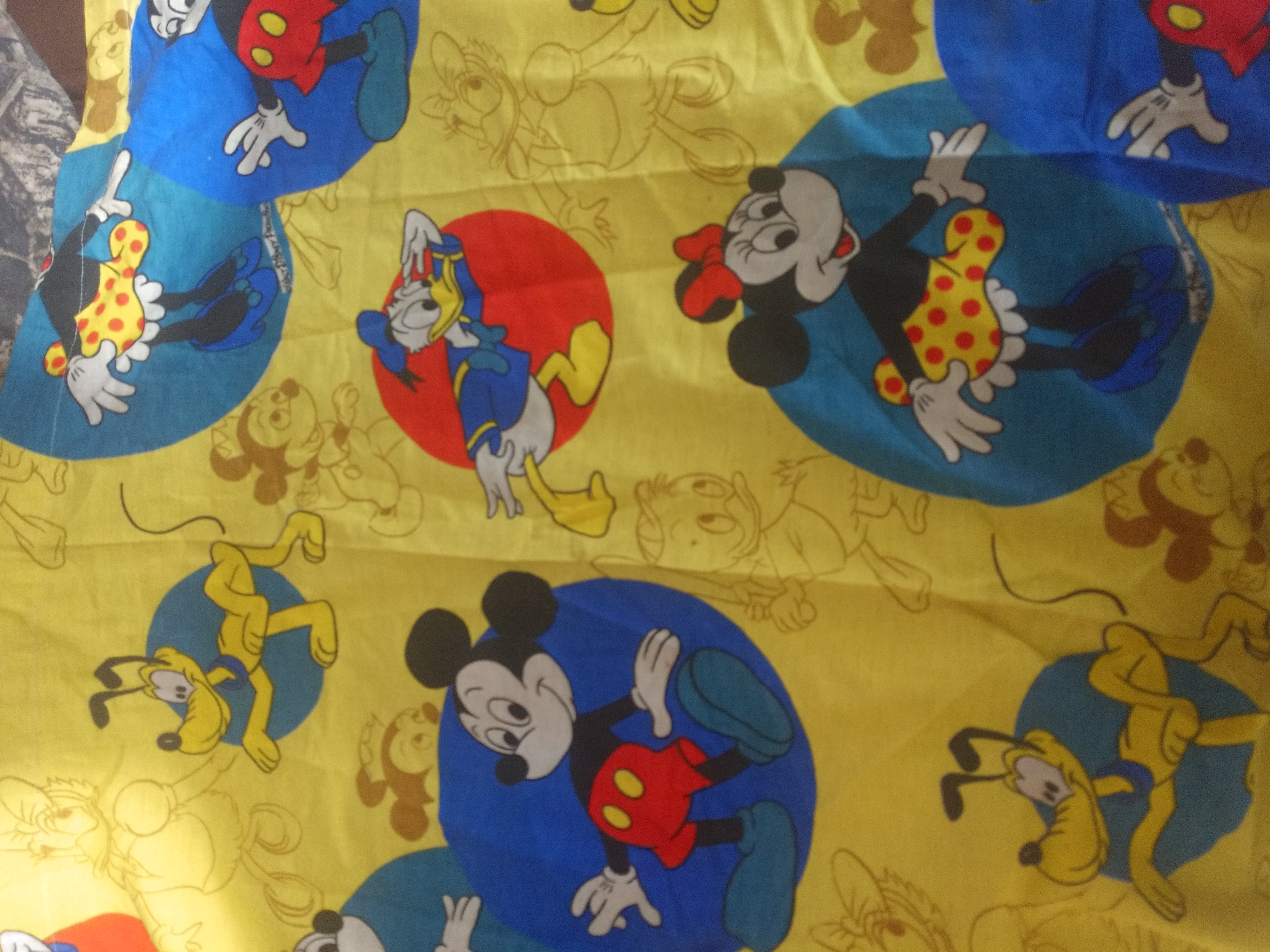 I have a bedding set that comes with 2 sheets, 2 pillow cases, and curtains. It has Mickey mouse, Minnie mouse, Donald duck, Daisy duck, Pluto on them. The set is in good condition.