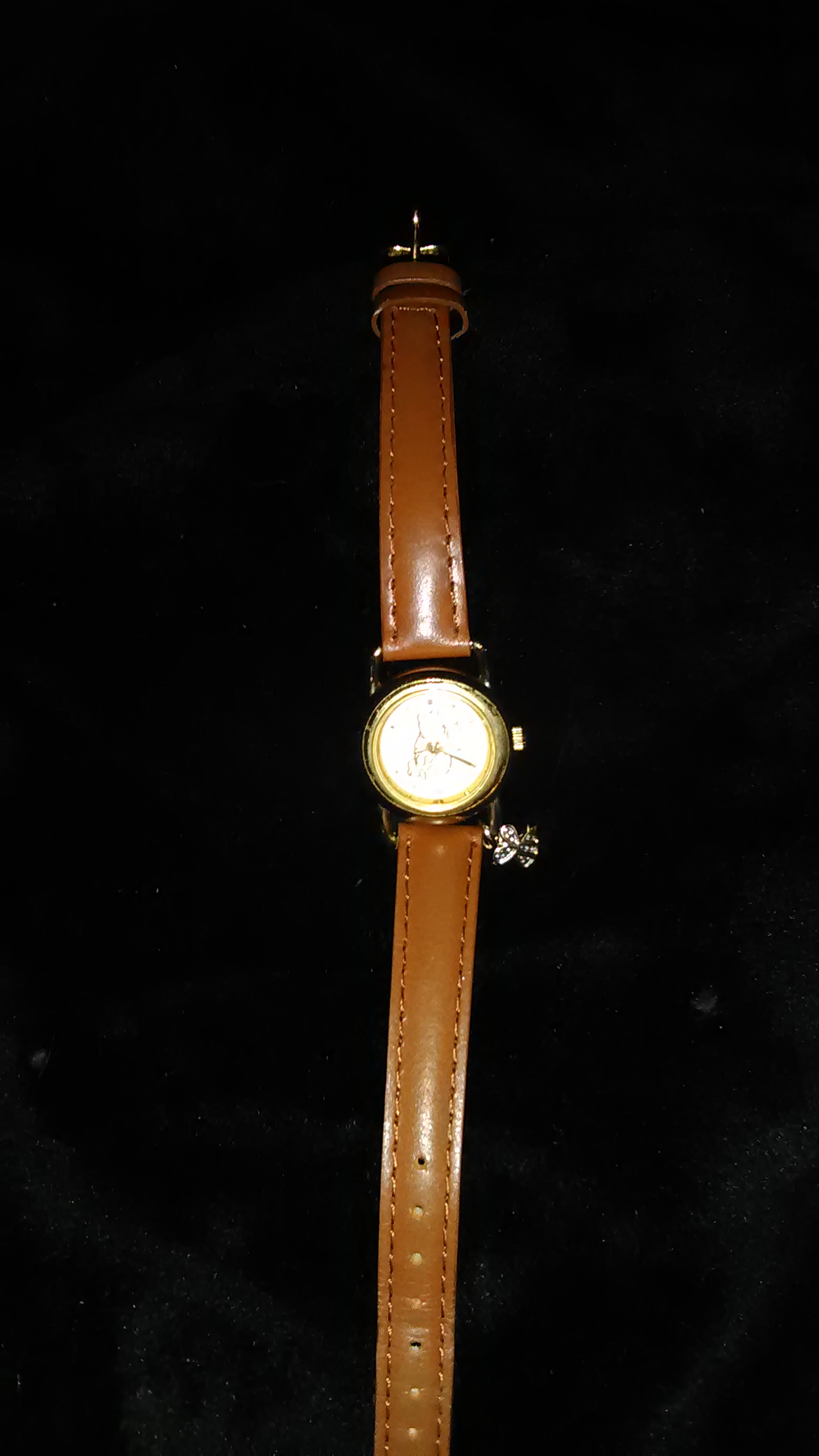 I have an older Winnie the pooh watch its gold toned watch with pooh on time piece with leather band stamped Disney as well has a honey bee charm dangling from it .not sure if its 70,s or 80,s I've looked online and can't find one like it others similar were selling for about $100.00 does anyone know the value ? Or year it was made ?