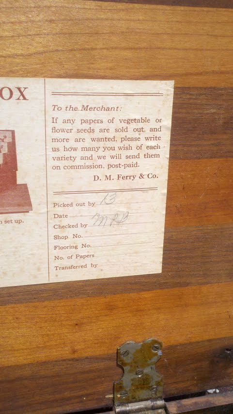 I have not cleaned this box. It is still dusty and dirty from years of storage on a dirty shed shelf. It has dovetailed joints and hook fasteners on each side of the lid. The pictures should give you a better description than what I can. I have researched online and found out these boxes are from the 19th century. I found an EXACT identical box like this on Worthpoint but the only difference is instead of saying D.M.Ferry and Co., it reads Ferry and Morse Seed Co. I have learned that Ferry joined with Morse in the 1930's. So this box should date before then.