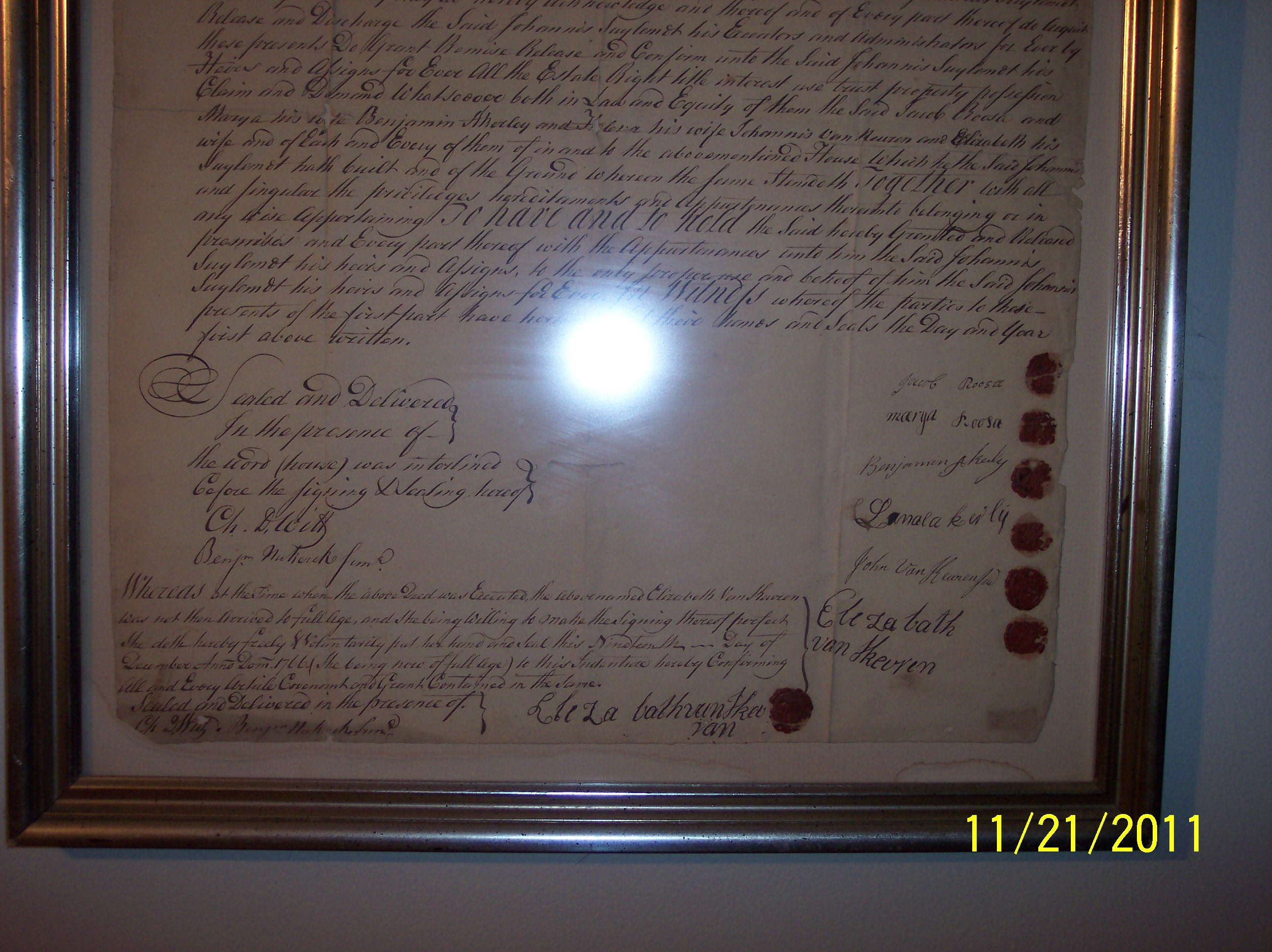 A family piece that's been hanging in our house for years, with wax sealed signatures for a property transfer from the 1700/s