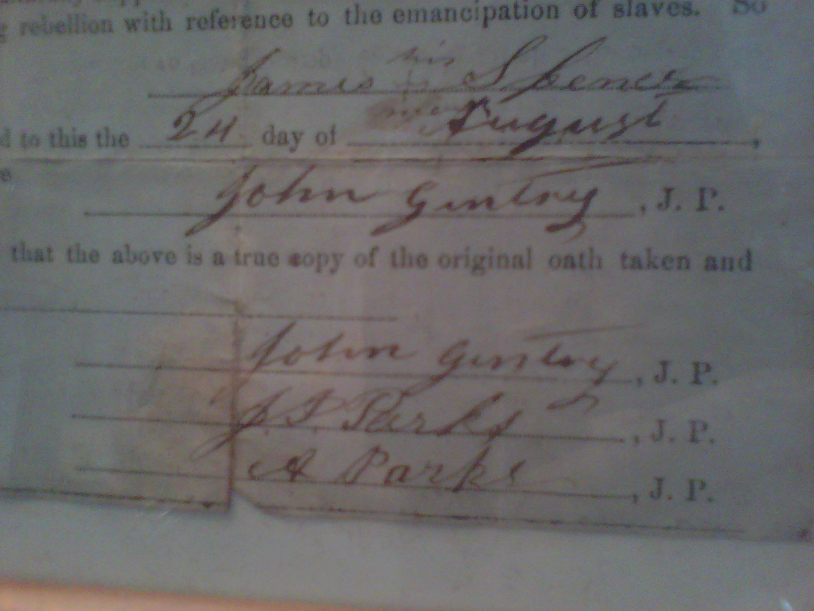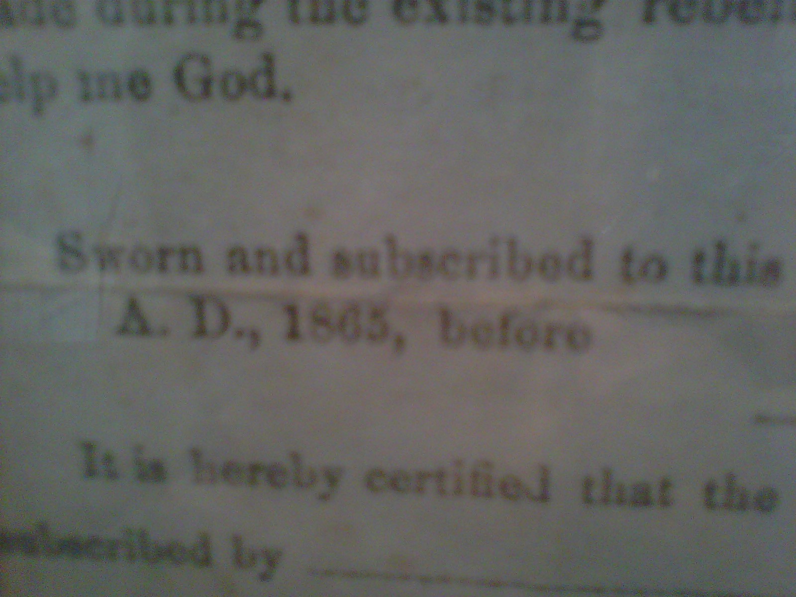 Sworn and subscribed to this the 24th day of Aughust A.D. , 1865, before John Gentry, J.P.