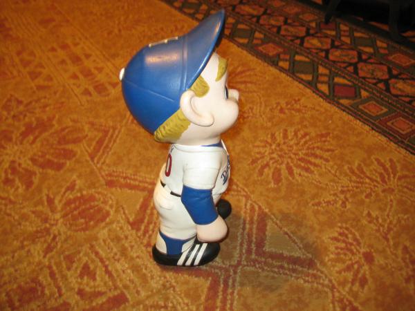 This is a statue(?) of Cey of the Dodgers Team of LA. It is a bit beat up.