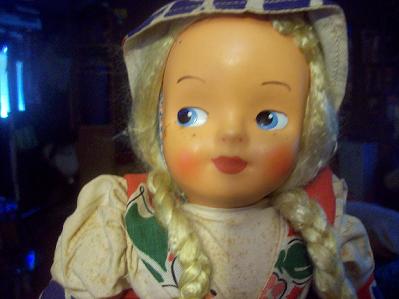 A cloth covered doll. I'm not sure what it is stuffed with. The face feels like plastic and the eyes etc are painted. the clothing are stiched onto the body.