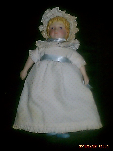 Description Need info and value please...5-7" tall cloth body,molded hair,porcelain,bisque?