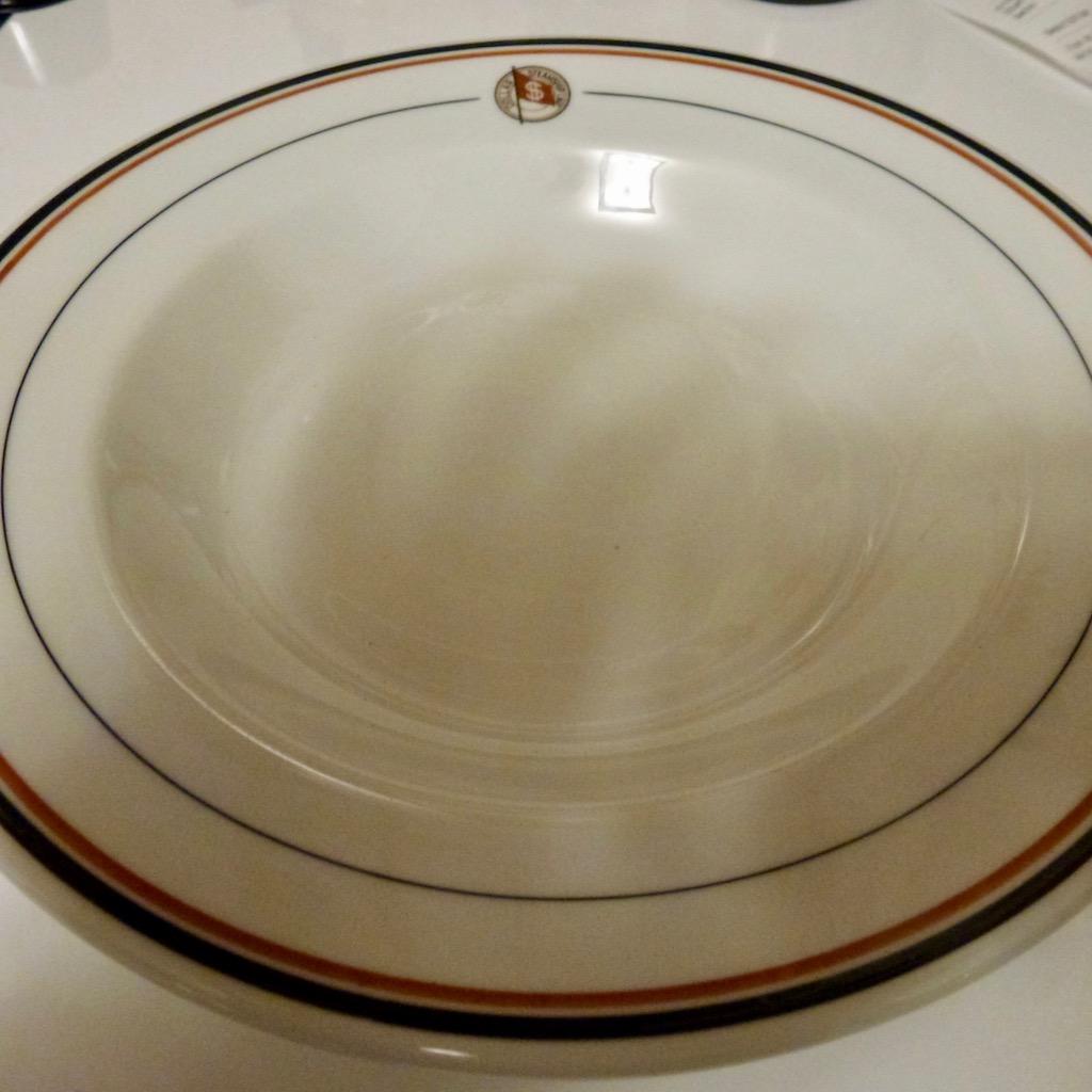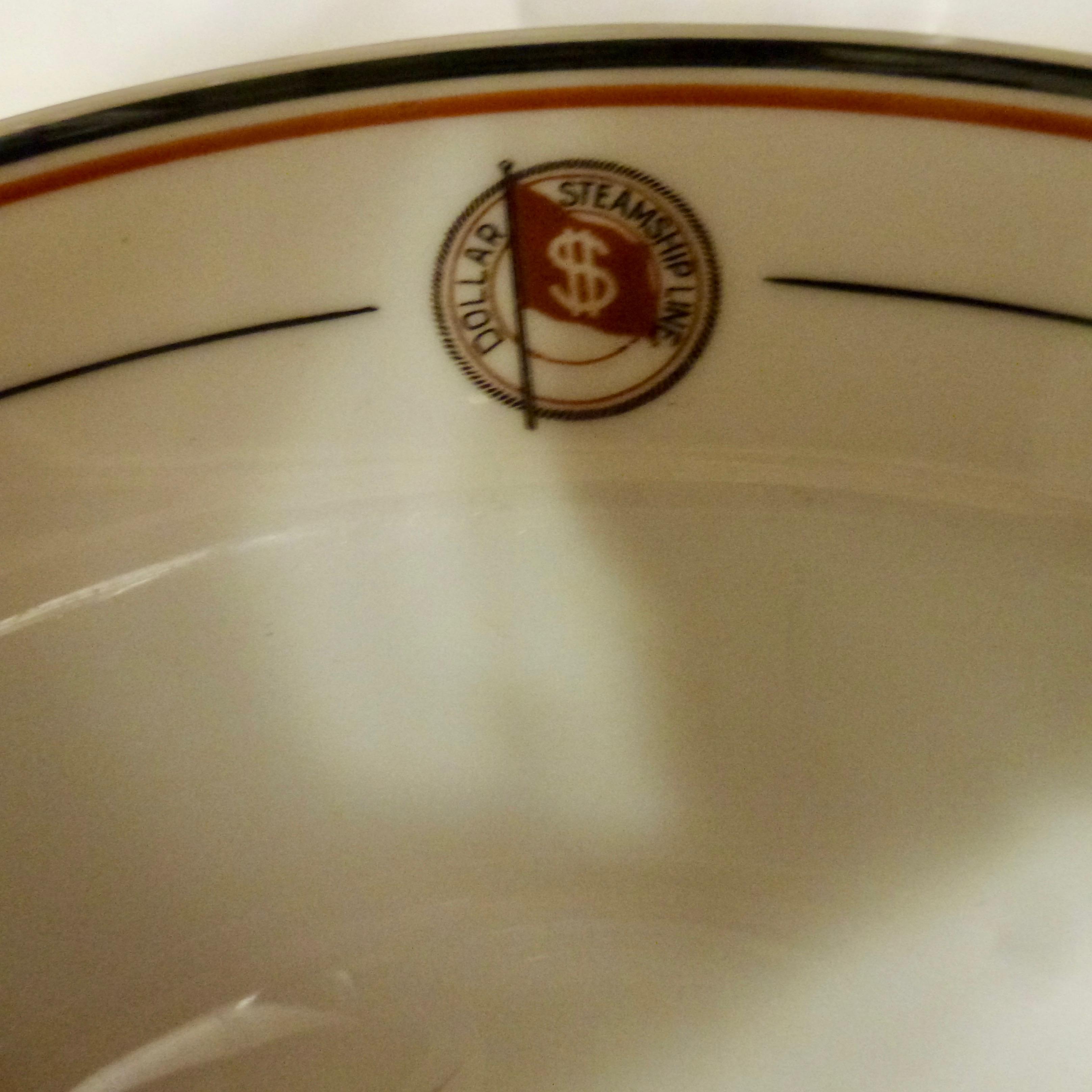Soup plate, approximately 8.75 inches in diameter with Dollar Steamship Lines logo. O.P. CO, 1928.