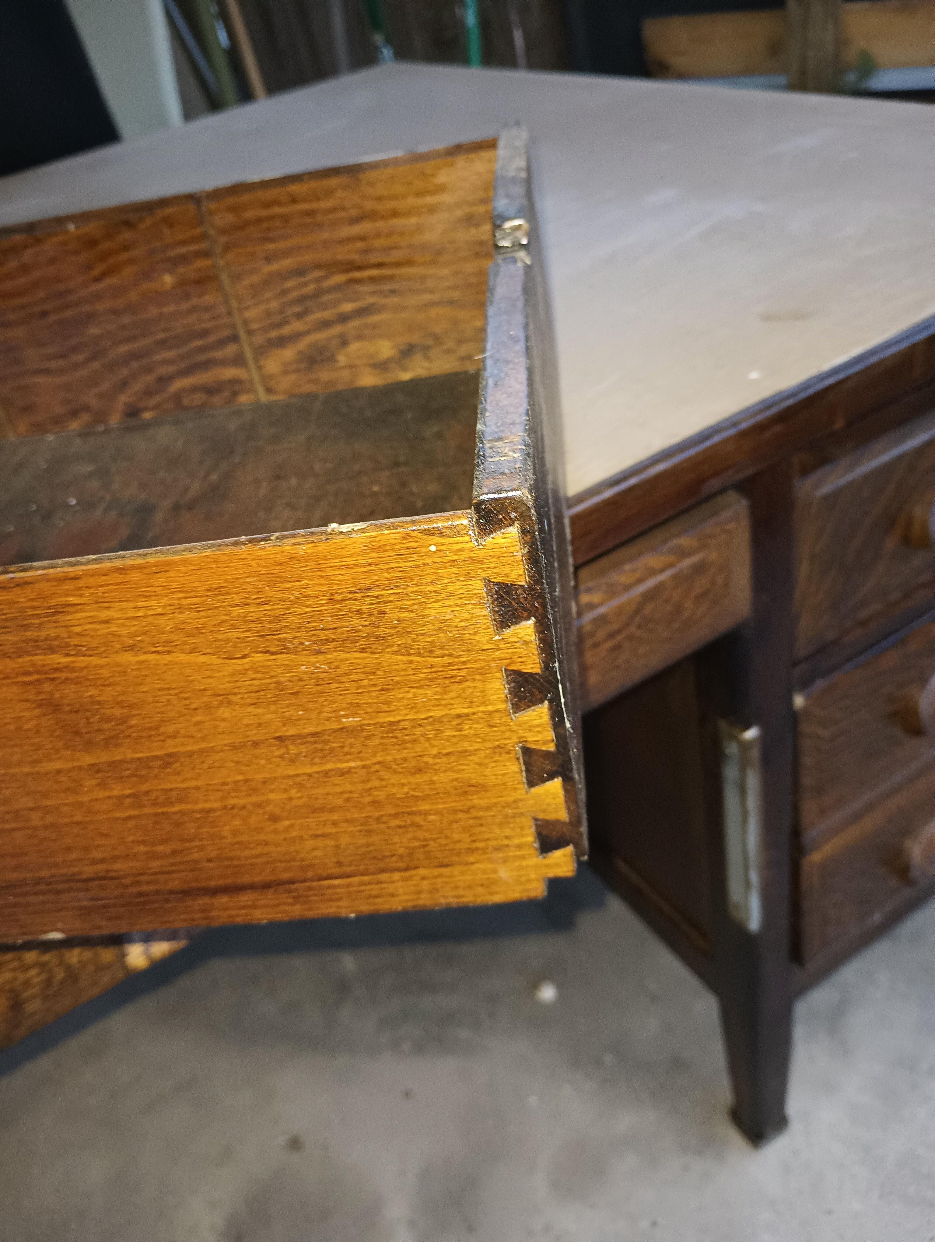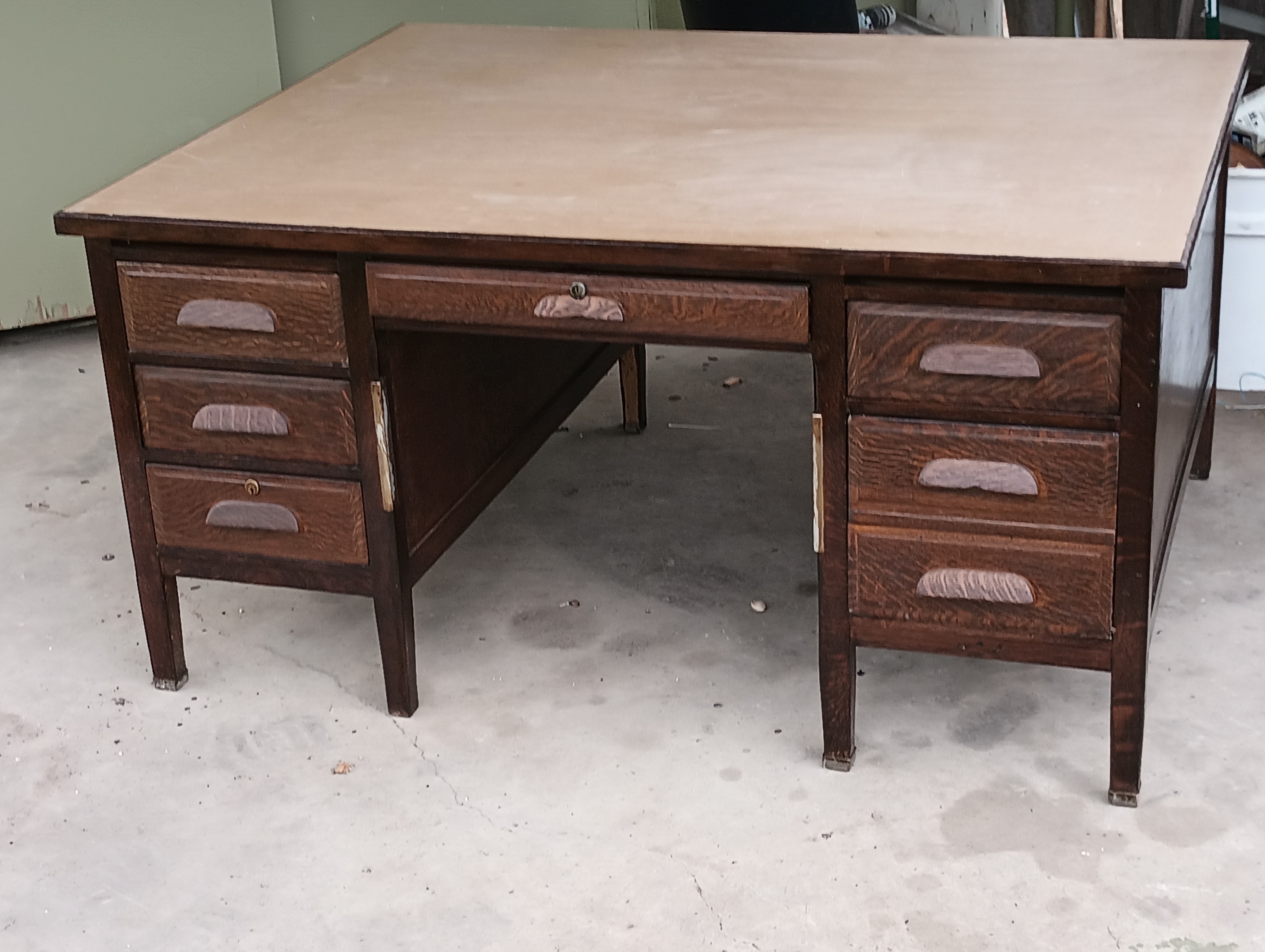 This desk is in very good condition just missing a few of the brass boots off the legs and a few small scratches to the top of the desk
