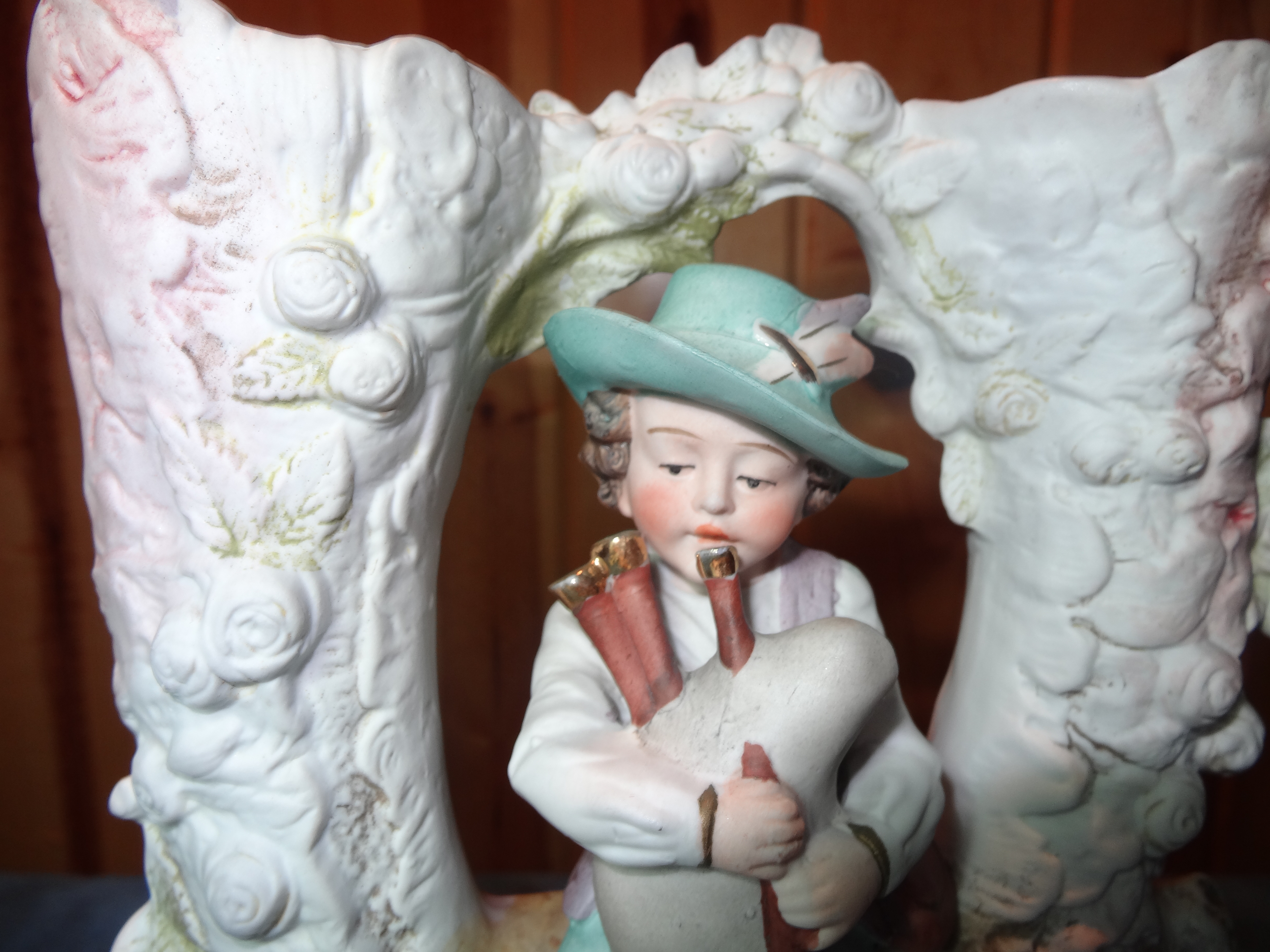 I bought this double vase at my local thrift store. After trying to do some online research about this item, I came up with nothing. The bottom reads GERMANY 5 (maybe a "C" with vertical lines going through it) then DEP 11875A. What puzzles me is the paint on both fronts of the vases. Could it be washed off or worn away so easily? If anybody knows anything, I sure would appreciate your imput.