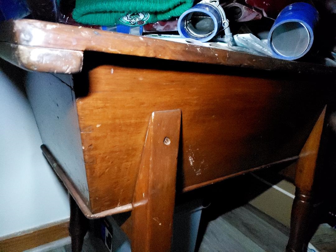 I recently picked up a dough box locally. It has some wear from usage. A partial split in the cover but is a one piece board. It looks to have had straight slotted screws added maybe later in its life as a repair. The dovetail joints are widely spaced and irregular in shape which leads me to think its older than previously thought. Any insight would be greatly appreciated.