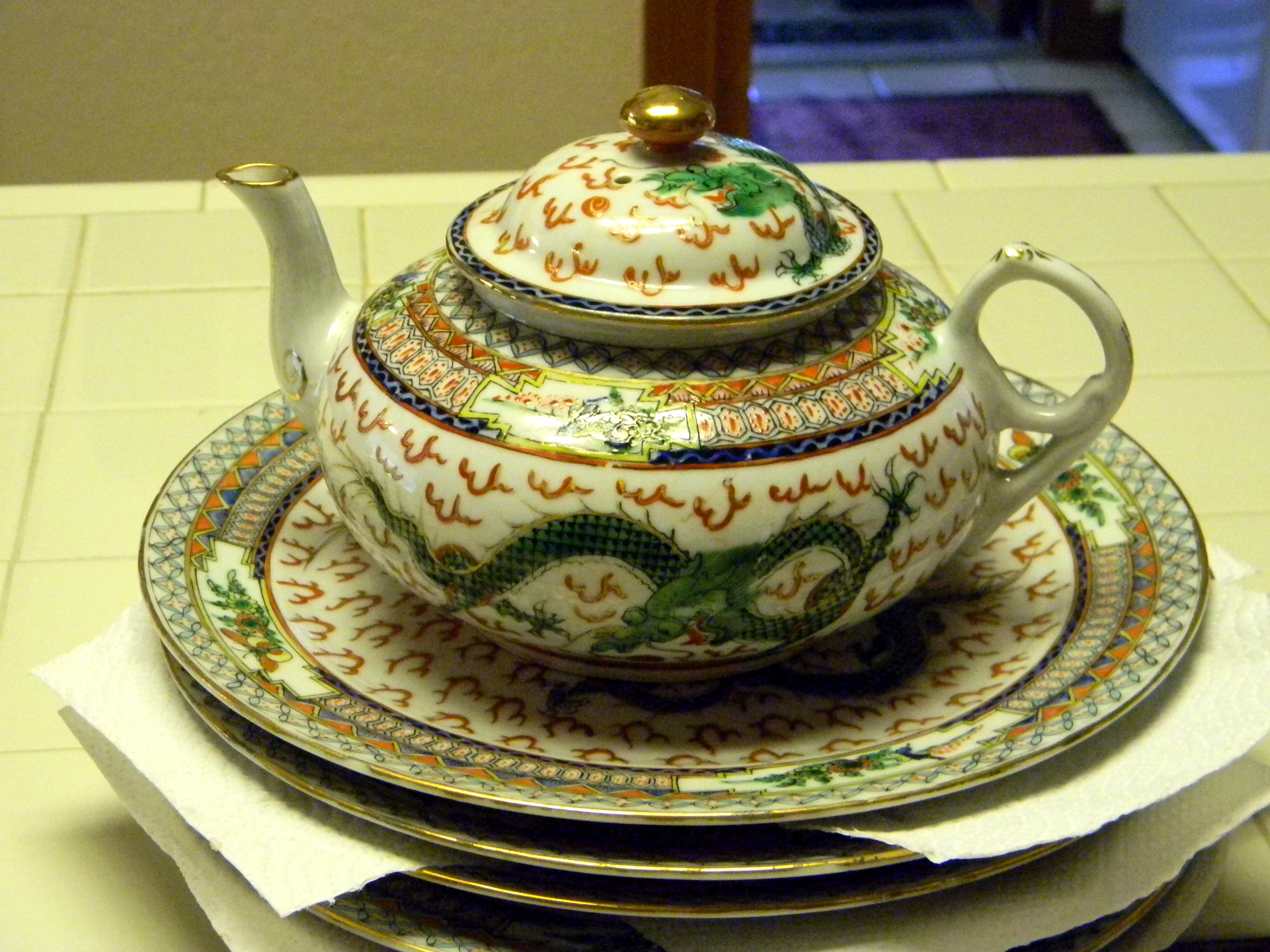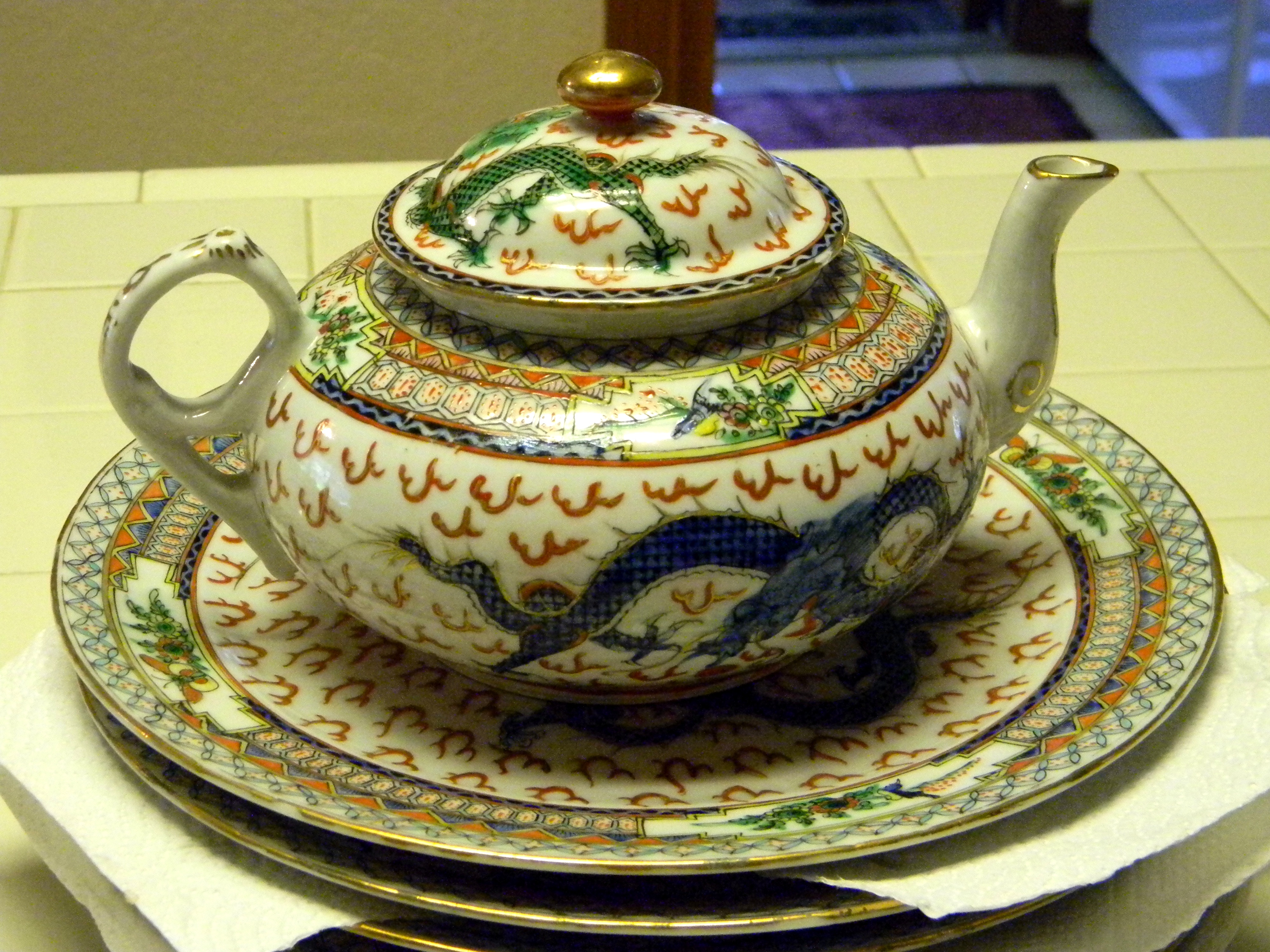 I have recently received this china and know nothing about it. The only mark of any kind is the red square in photos. There are 6 dinner plates that measure about 10 inches diameter. The teapot measures about 5 inches high. I have no idea if these pieces of china are old and new. Should I use them or put them away, I don't know. If anyone knows what the mark is, the pattern, just about anything would help. I would truly appreciate any help, Thank you