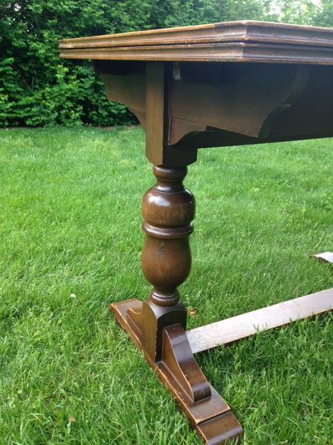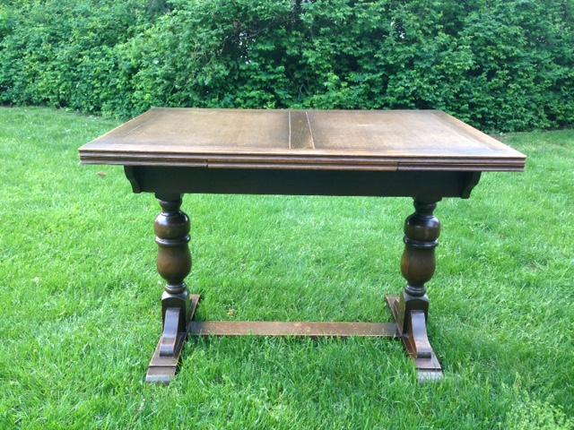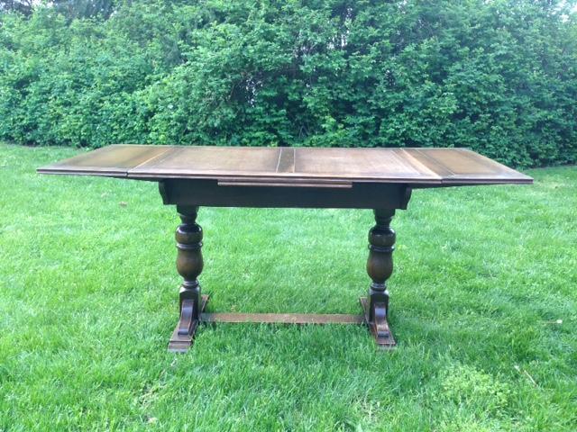 I believe this to be an English Antique Oak Draw Leaf Pub Table. The table has several different markings on it: multiple "SS" engravings, a stamp "F 161", image that looks like two pac-mans and the number 200 below, and an engraved "M" (see attached images for pictures of the markings).