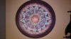 When photographing a glass front art piece stand to the side of it so the flash is not on the glass, or take it outside with no flash.