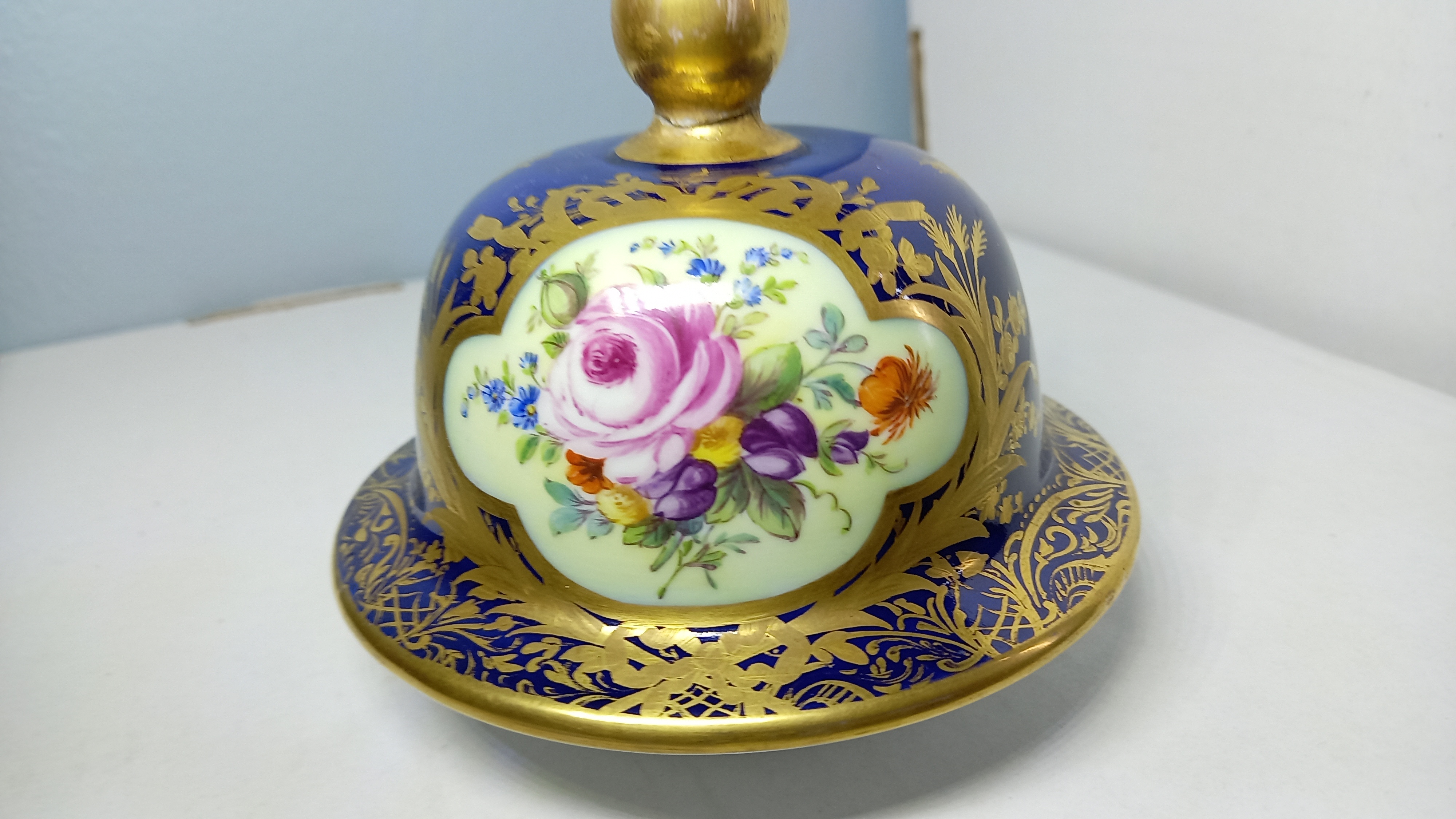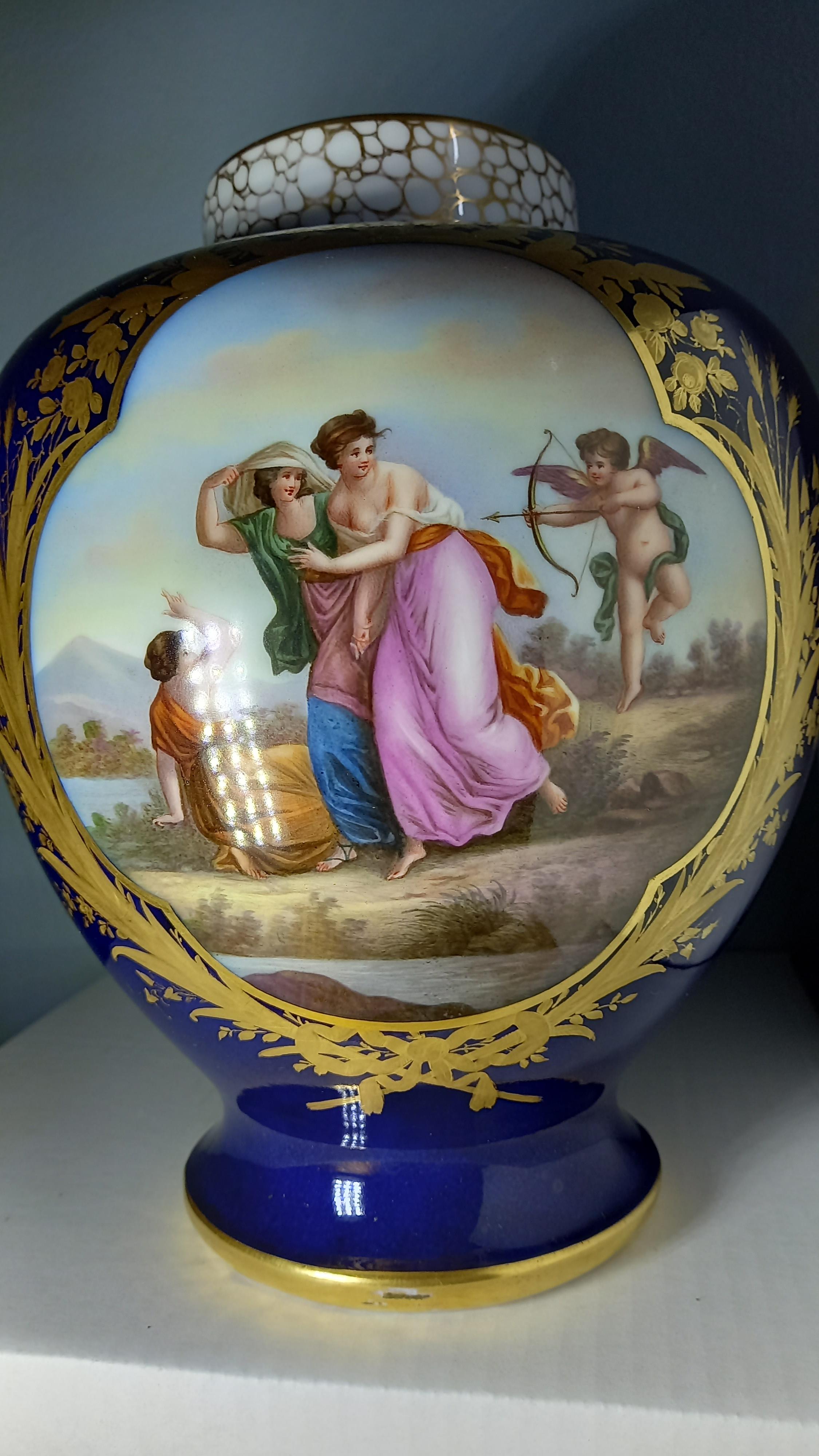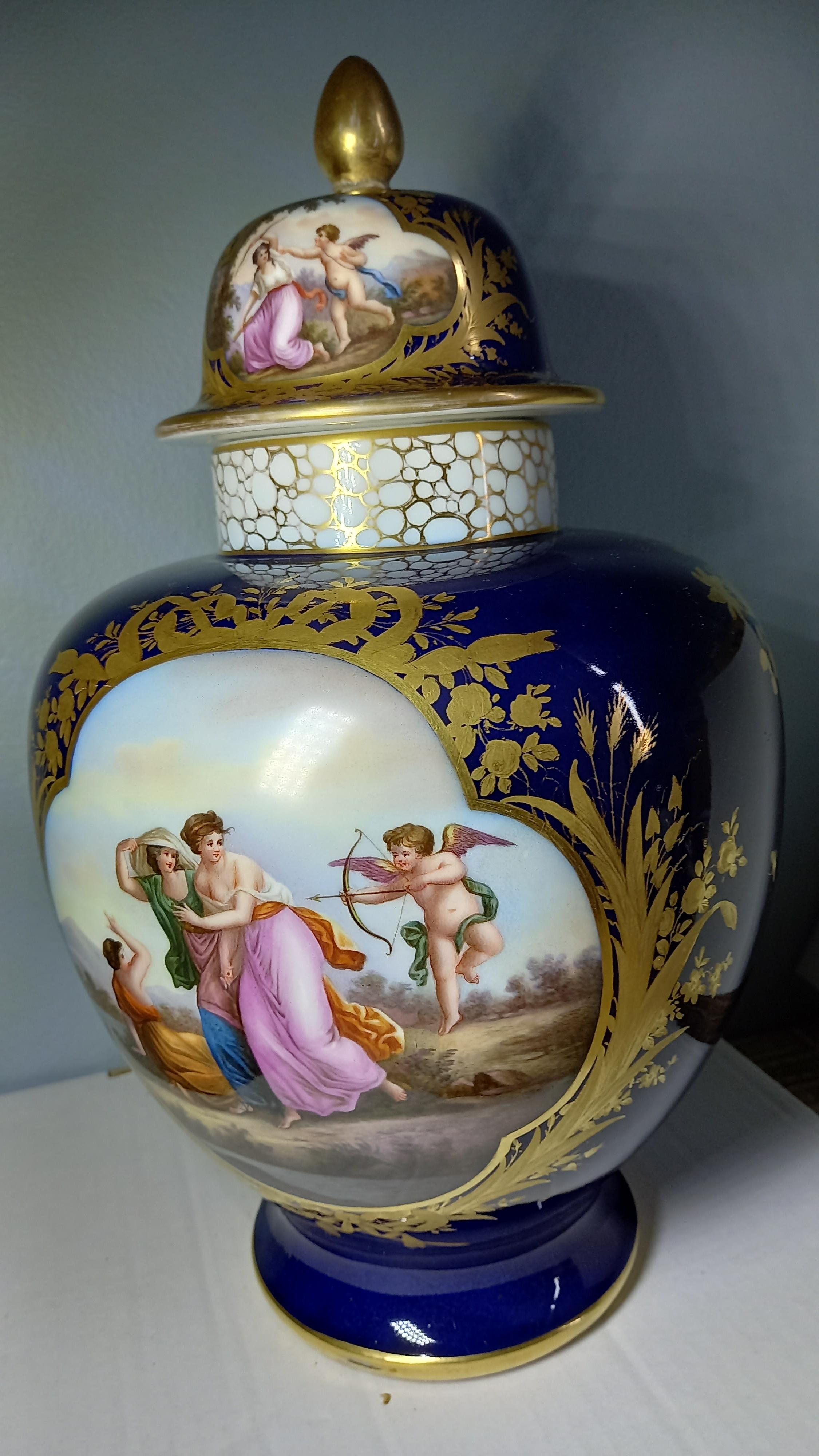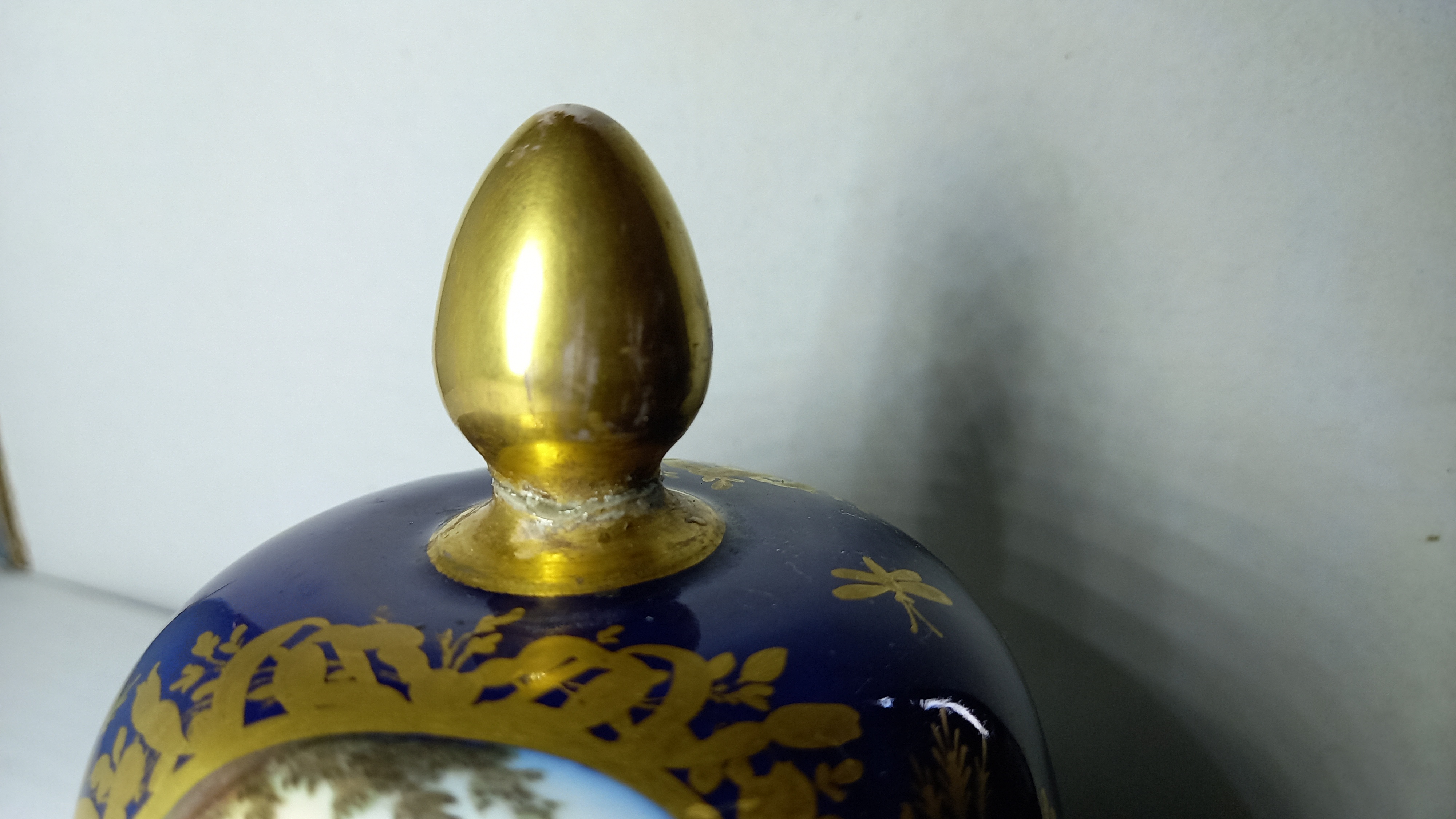 Looking for help dating/pricing/identifying this piece. Beautifully hand painted, measuring approximately 33x20cm (13x8inches), 1.95kg including the lid. The lid itself broke at the very top and was glued back together by the previous owner - pictures included. Other than that, in excellent condition.