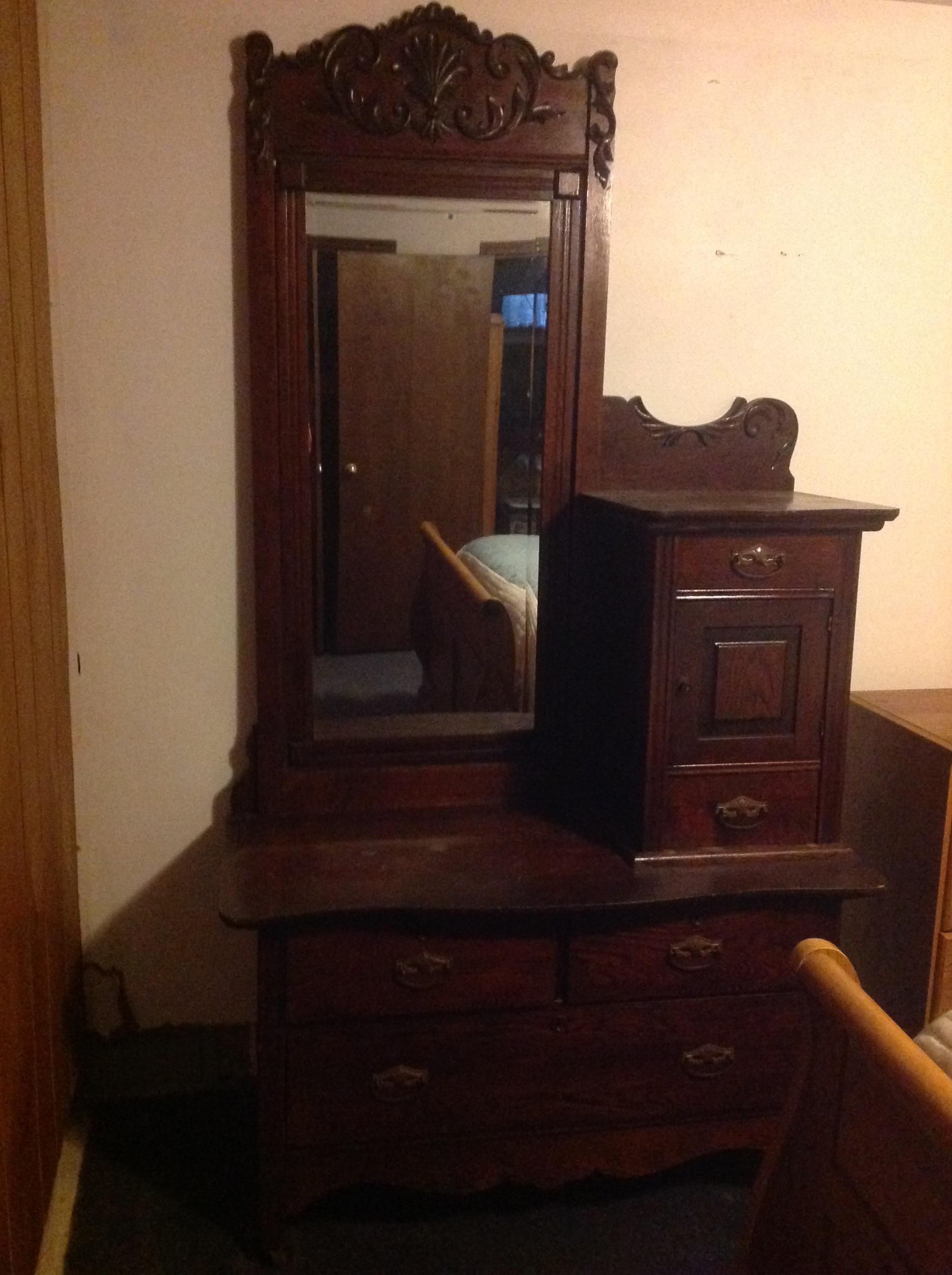 Dresser with hat box and mirror. I would like to know the value of this dresser. Thank you!
