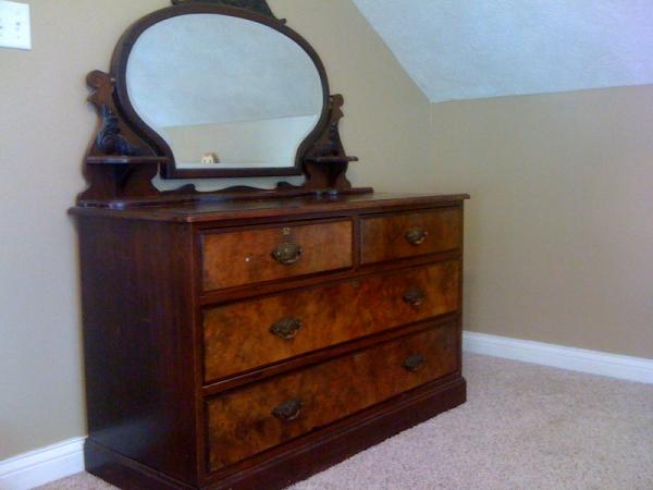 I don't know a lot about this furniture. It is two pieces the chest of drawers and a dresser that once had a mirror which is no longer there. Inside the drawers are metal stamps that say Williamsport Furniture Company, Williamsport, PA and on the back the numbers 764 1066 are pressed in it. In the bottom of the dresser is two doors that open and inside is a shoes rack (Picture included). I also included a picture of the back of the chest of drawers, the numbers I mentioned ,764 1066, are on the top left corner. I am not sure of the date period.
