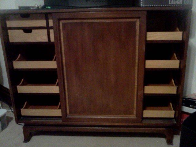 Large very lovely dresser.  Made by Johnson Handley Johnson manufactorers of fine furniture.  Has plenty of space there are three large drawers with dividers & four small drawers on the left side & four large drawers on the right.  Has a glass top protecting the wood on top.  Original tag is also included.